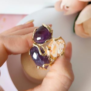 Anello Cammeo E Corallo Con Montatura Regolabile