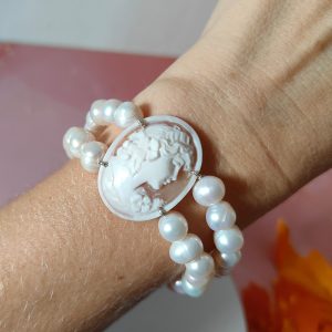 Bracciale Cammeo E Perle In Conchiglia Sardonica