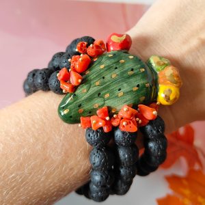 Bracciale Lava E Fichi D’India Con Corallo E Ceramica