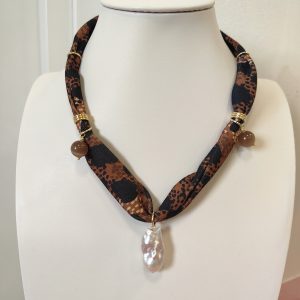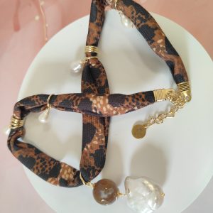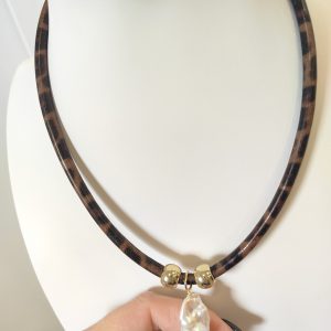 Girocollo Animalier E Perla Barocca Con Inserti Dorati Nichel Free