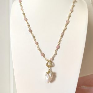 Collana Quarzo Rosa Barocca – Eleganza Dorata e Delicata