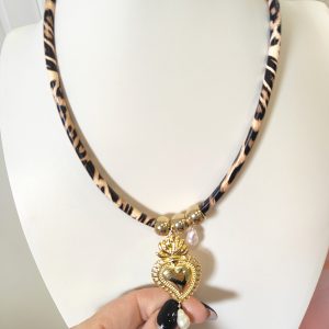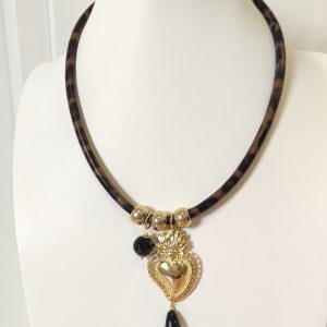 Girocollo Cuore Sacro Onice In Similpelle Leopardata