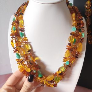 Collana Ambra E Crisoprasio Multifilo Artigianale