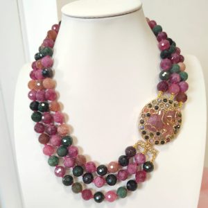 Collana Tormalina Multifilo Con Chiusura Laterale Dorata