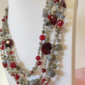 Collana Multifilo Labradorite e Borgogna – Eleganza Stratificata