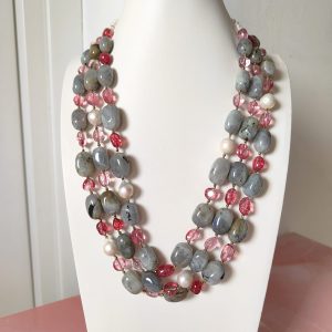 Collana Multifilo con Labradorite, Tormalina Rosa e Perle Naturali
