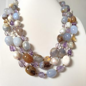Collana Pietre Harmony Luxe – Multifilo Con Calcedonio e Ametista