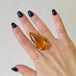 Anello Goccia Ambra Naturale  – Scultura Luminosa Da Indossare