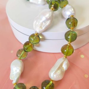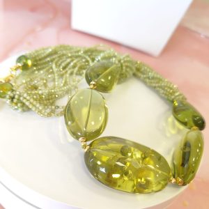Collana Perle Ambra Verde – Eleganza Naturale e Riflessi Dorati