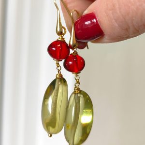 Orecchini Ambra Rossa E Verde – Eleganza Naturale