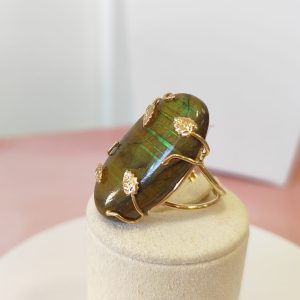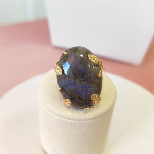 Anello Labradorite Verde Dorata In Argento Placcato Oro