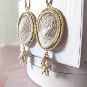 Orecchini Cammeo E Perle Barocche Incise A Mano