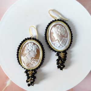 Orecchini Cammeo E Onice Nero Inciso A Mano