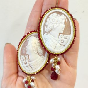 Orecchini Cammeo Borgogna Con Perle E Agata