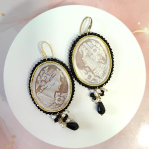 Orecchini Cammeo Onice Con Perle E Gocce Nere