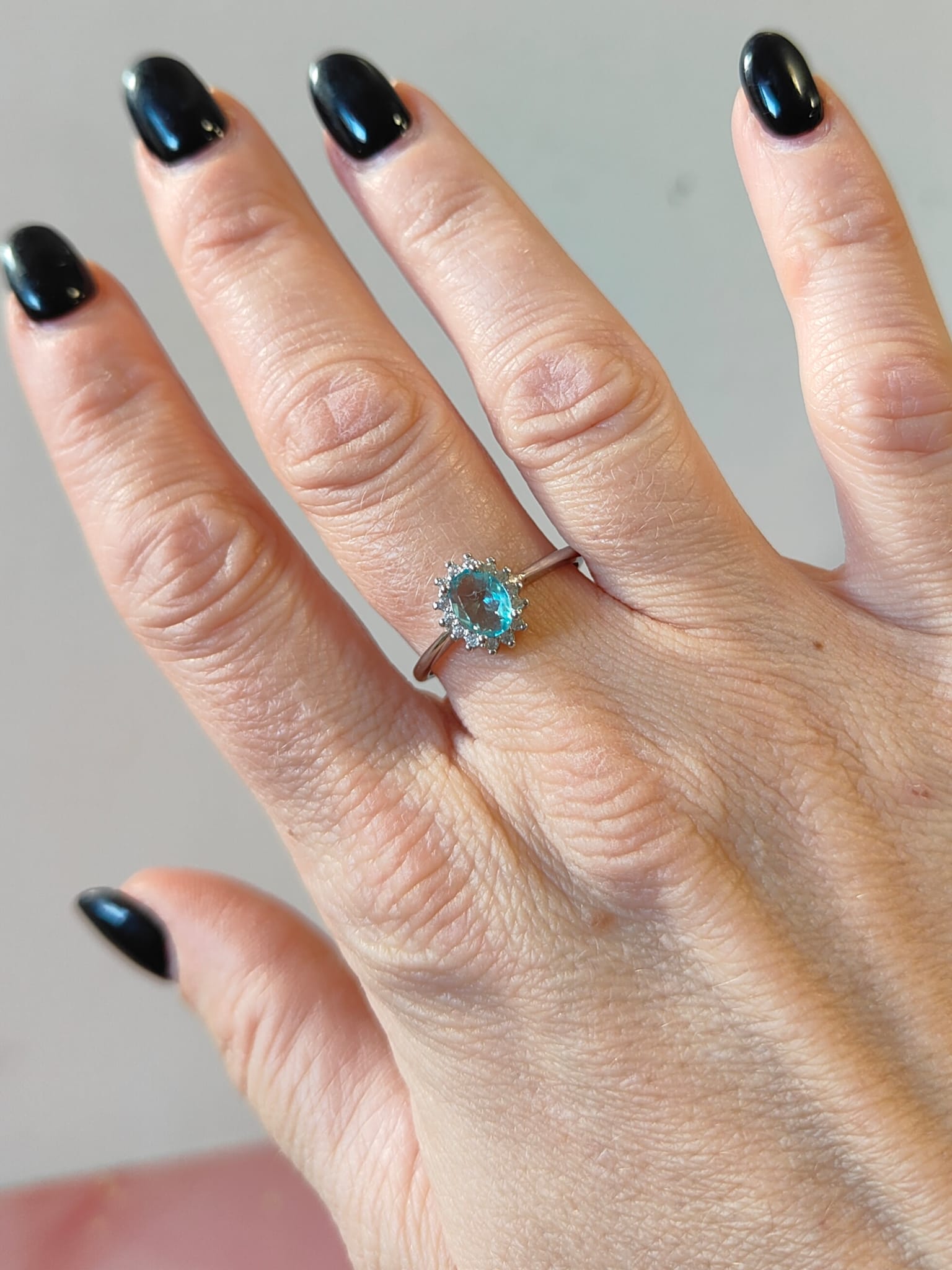 L’anello azzurro elegante è un accessorio luminoso e delicato, perfetto per chi ama i colori pastello, i toni marini e gli abbinamenti raffinati con argento e bianco.