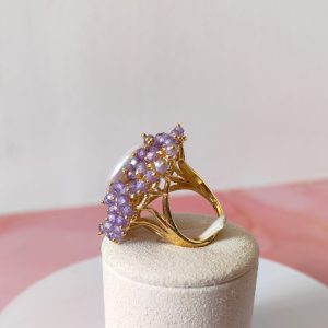 Questo anello lilla con perla è perfetto per completare look eleganti o romantici, ma anche per dare un accento di personalità a un outfit quotidiano. Il contrasto tra la purezza della perla e la vivacità dei cristalli lilla regala un’eleganza senza tempo, ideale per chi ama accessori che parlano di sé con delicatezza.