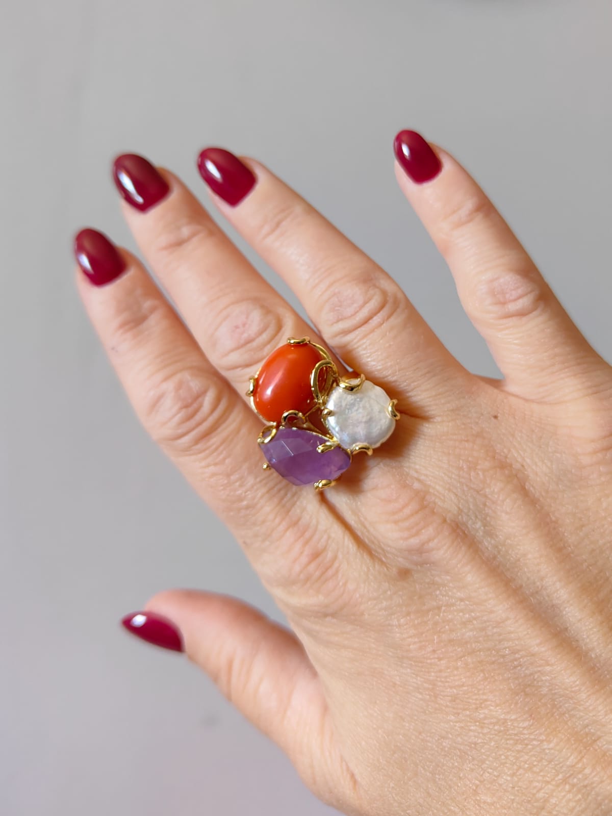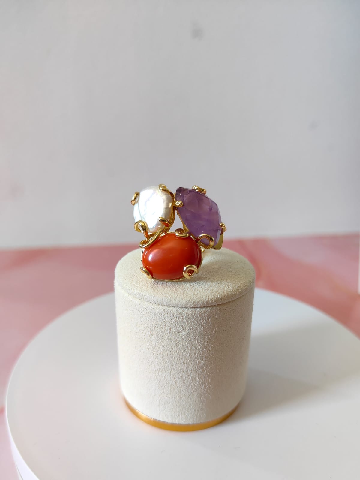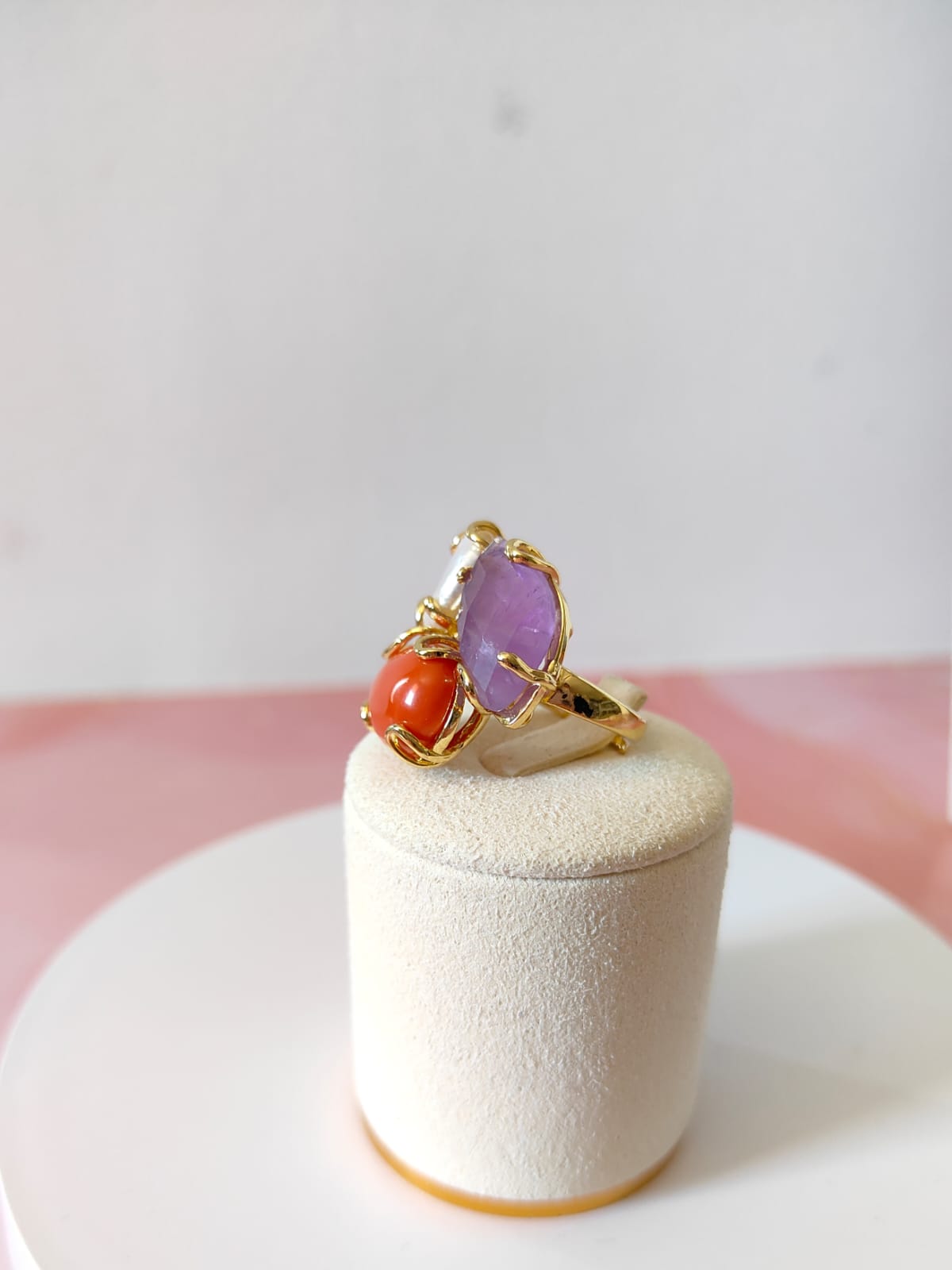 Anello Perla Ametista Corallo: Un’Armonia Di Colori E Luce