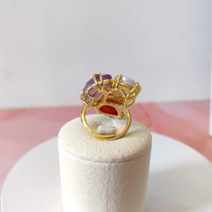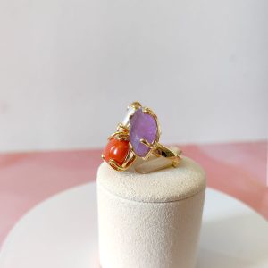Un gioiello che racchiude energia, eleganza e personalità. L’anello perla ametista corallo è una creazione artigianale che unisce la brillantezza delle pietre naturali al calore del metallo dorato. Realizzato in ottone dorato regolabile, questo anello è pensato per adattarsi perfettamente a ogni mano, offrendo comfort e stile in un solo gesto.