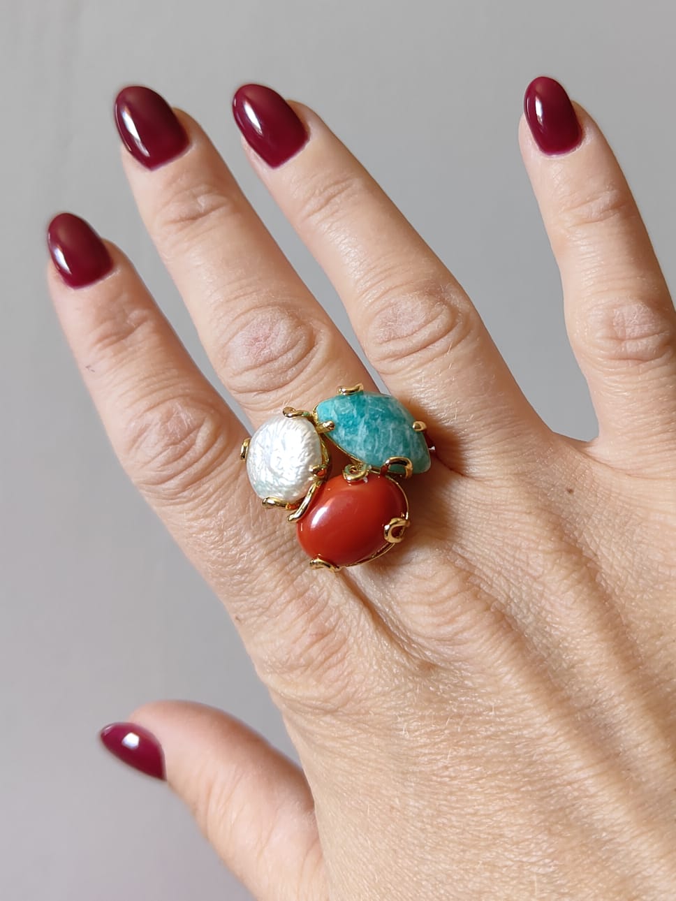 Anello Perla Corallo Amazzonite: Il Fascino Della Natura In Un Gioiello