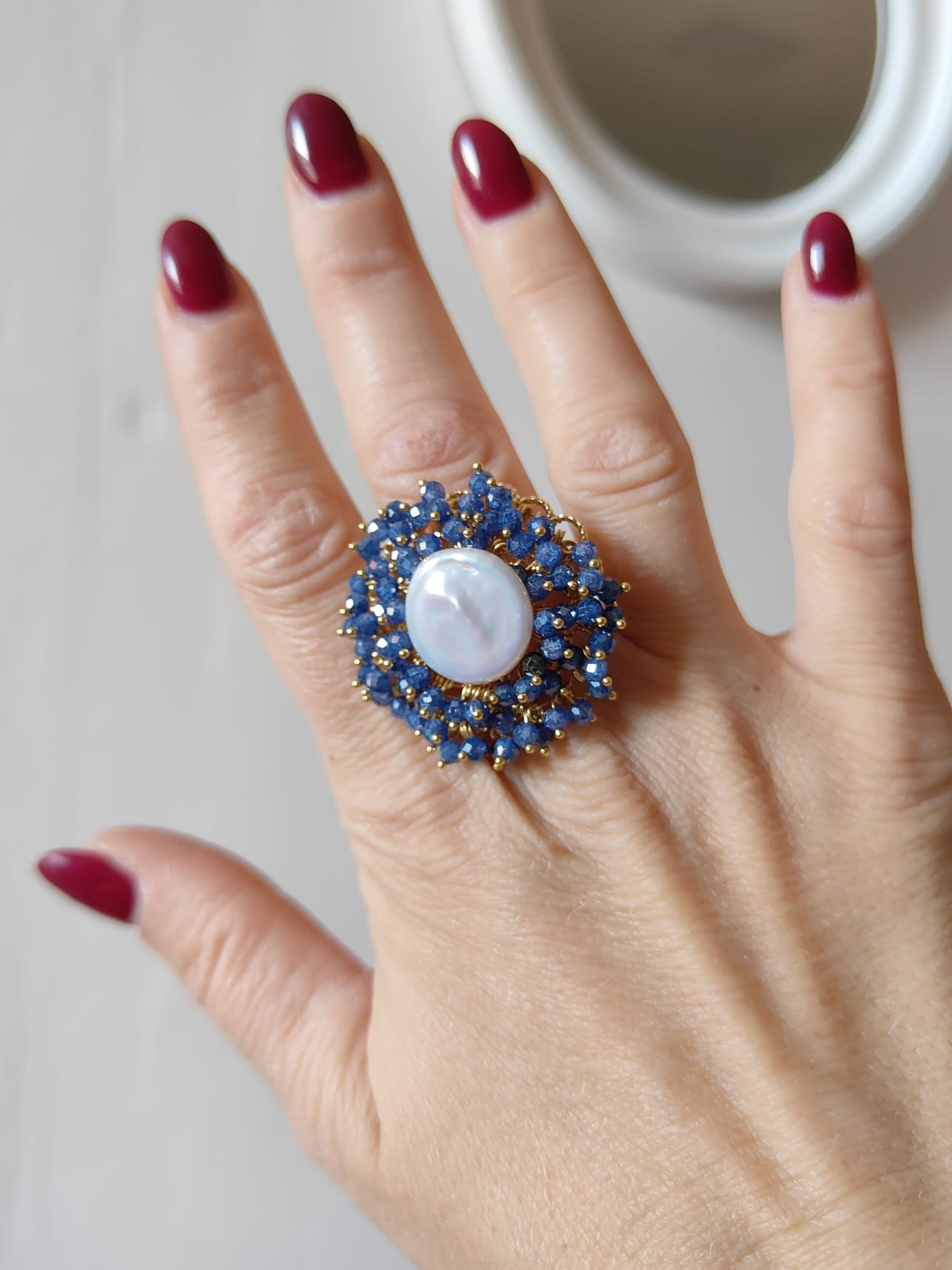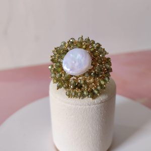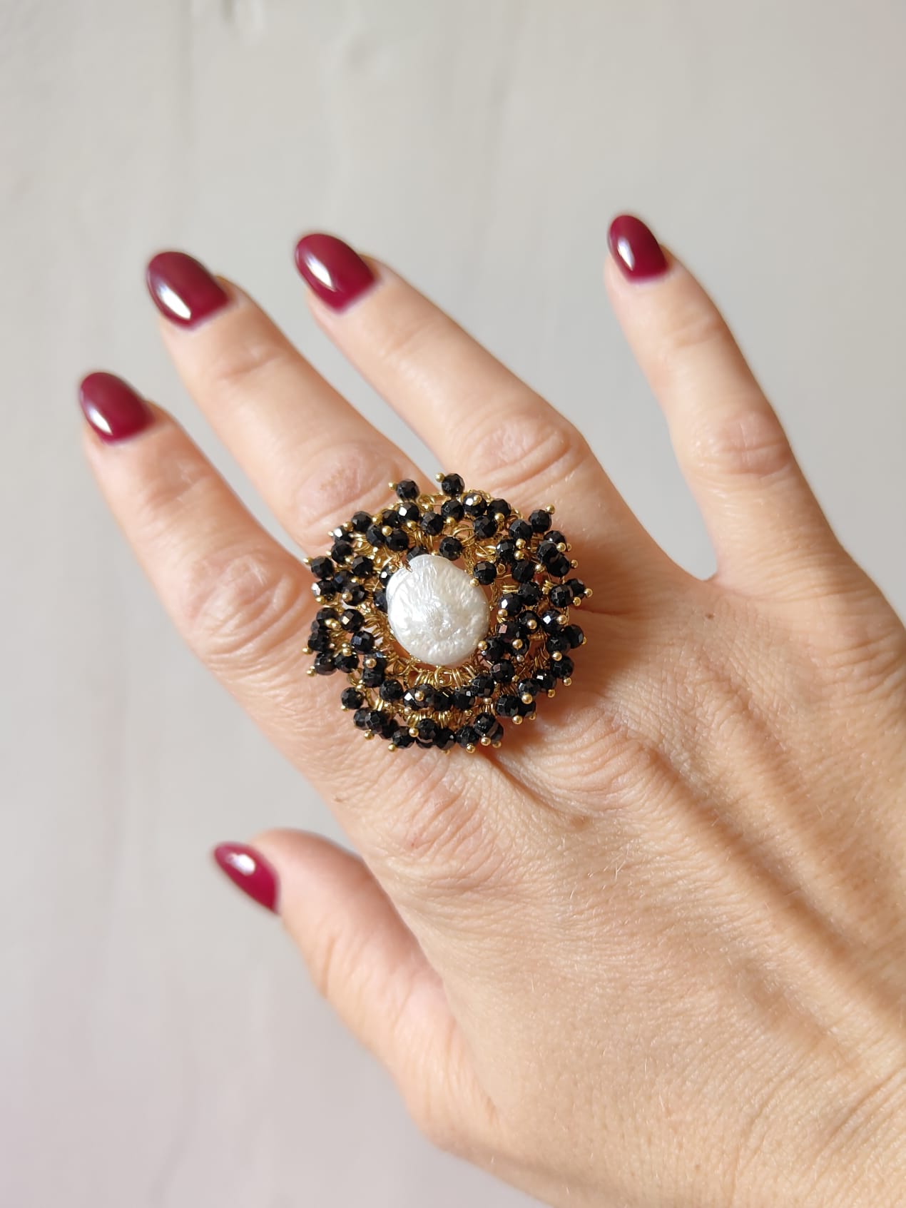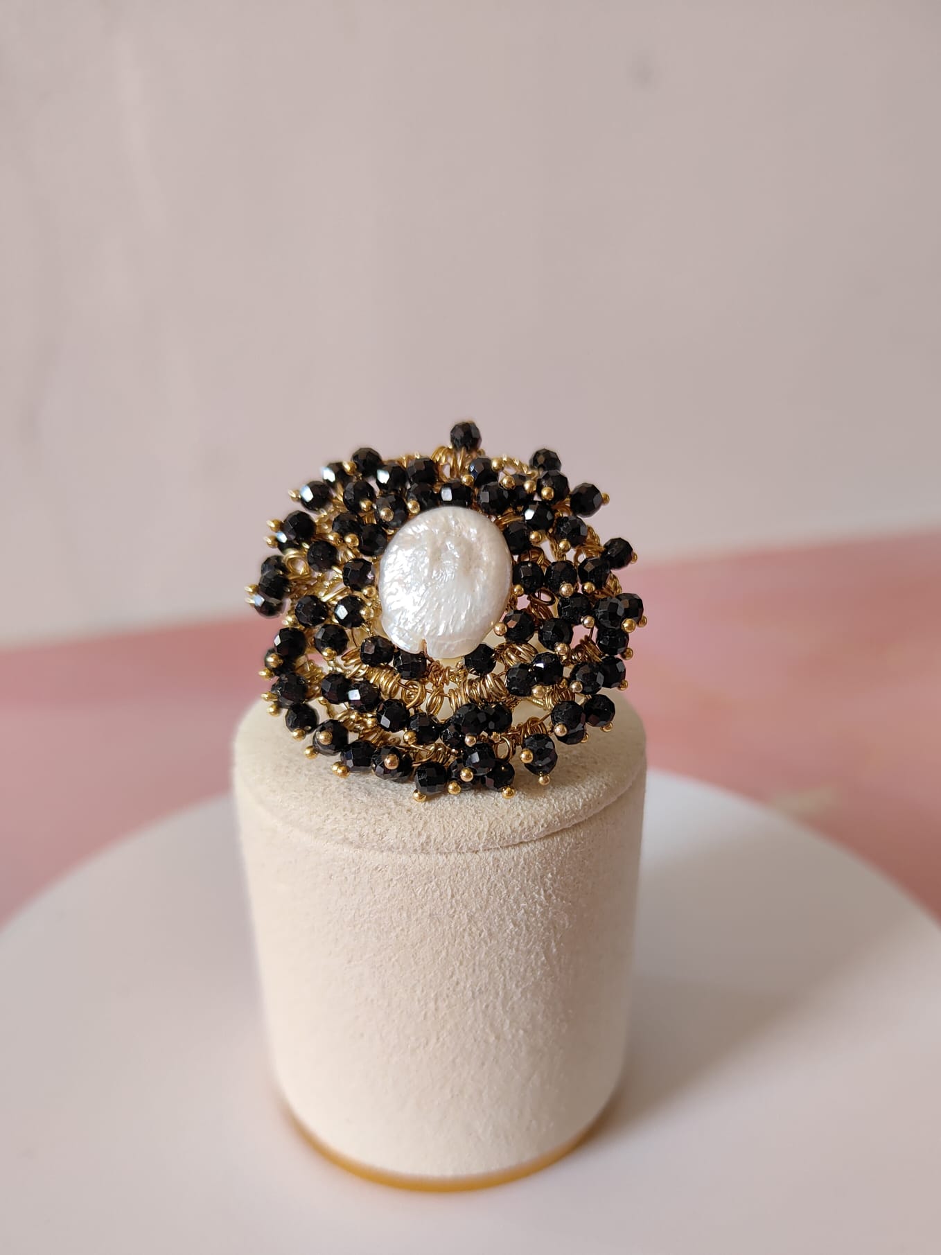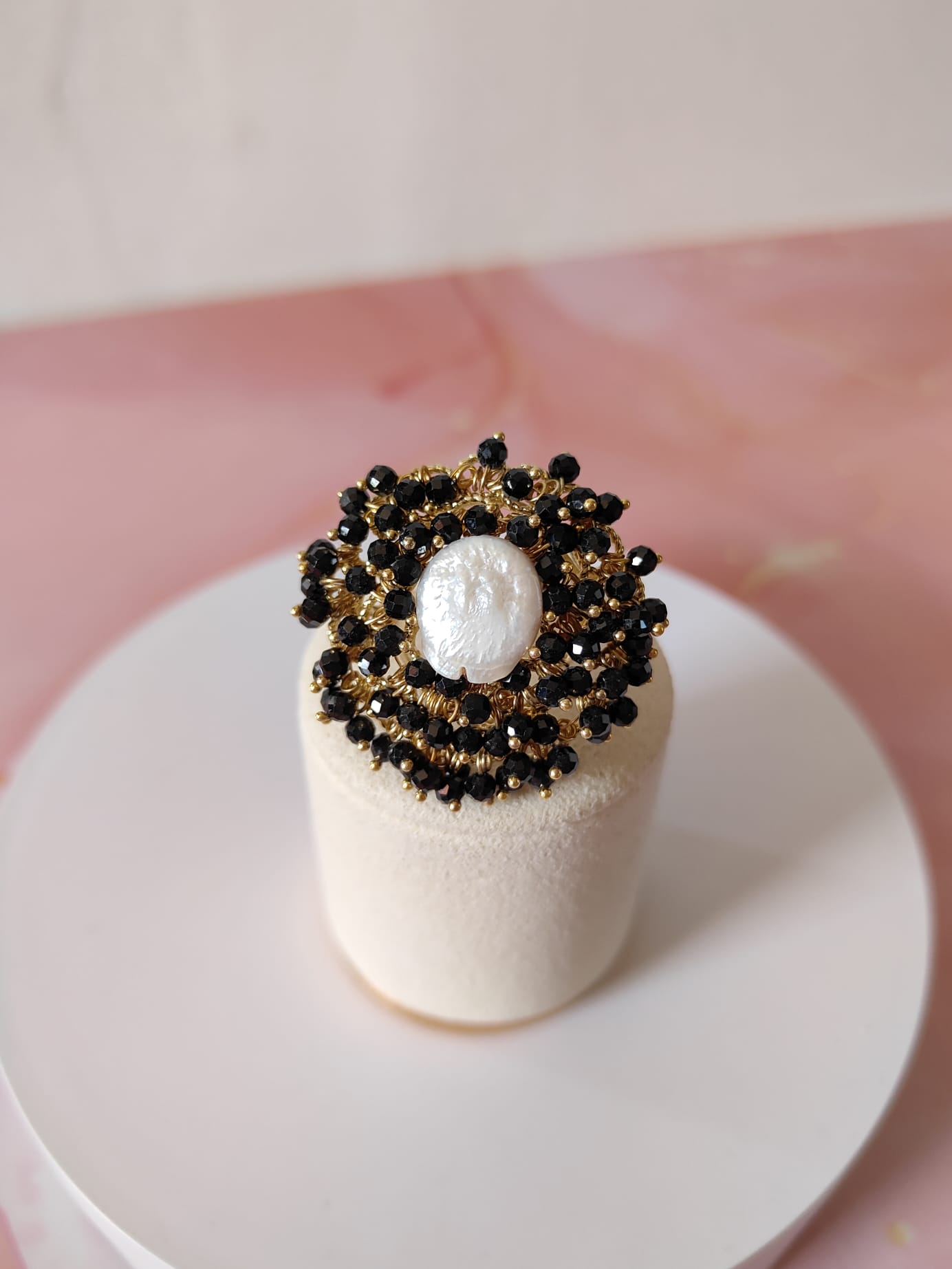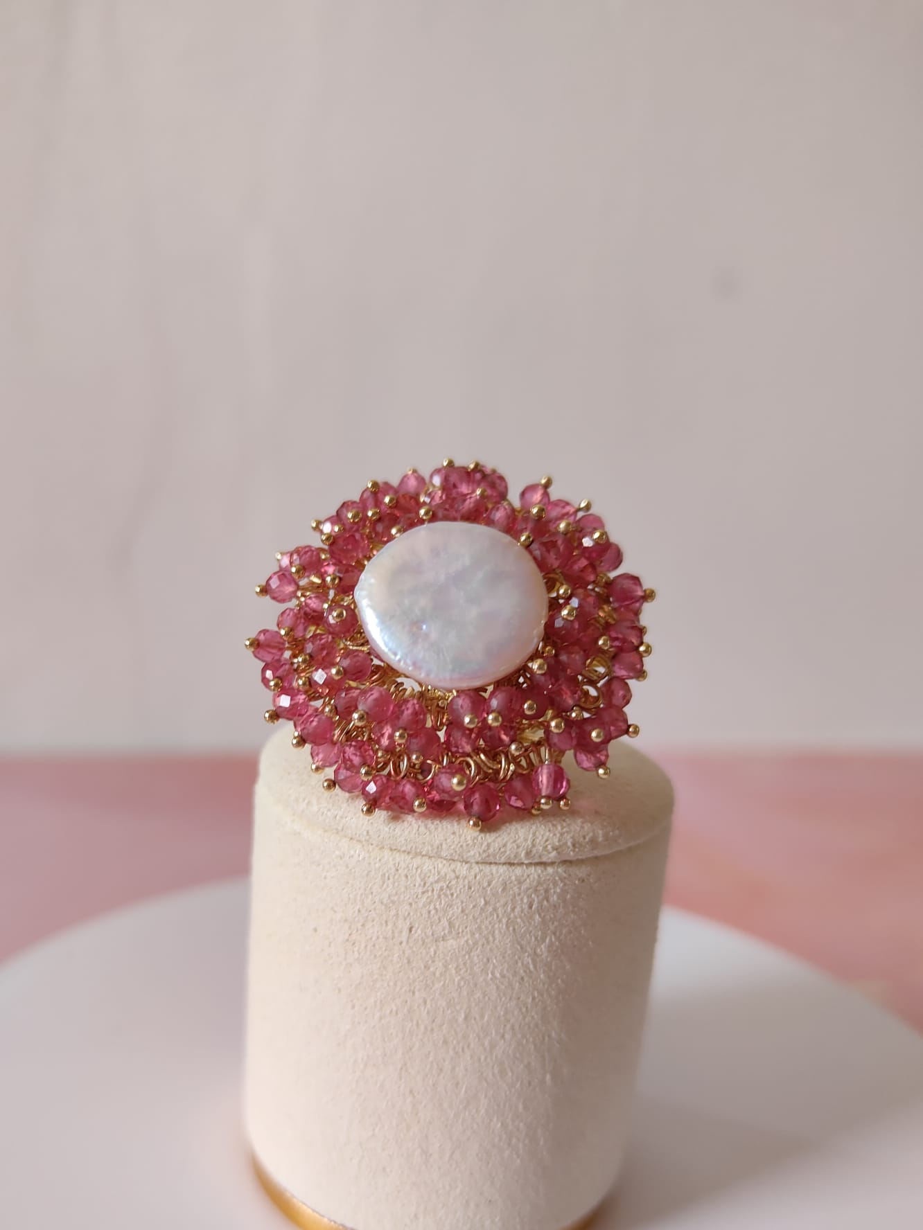 L’anello perla e cristalli è una celebrazione di luce, colore e artigianalità. Ogni dettaglio è pensato per creare un gioiello che unisce eleganza e personalità, rendendo unico ogni gesto di chi lo indossa.