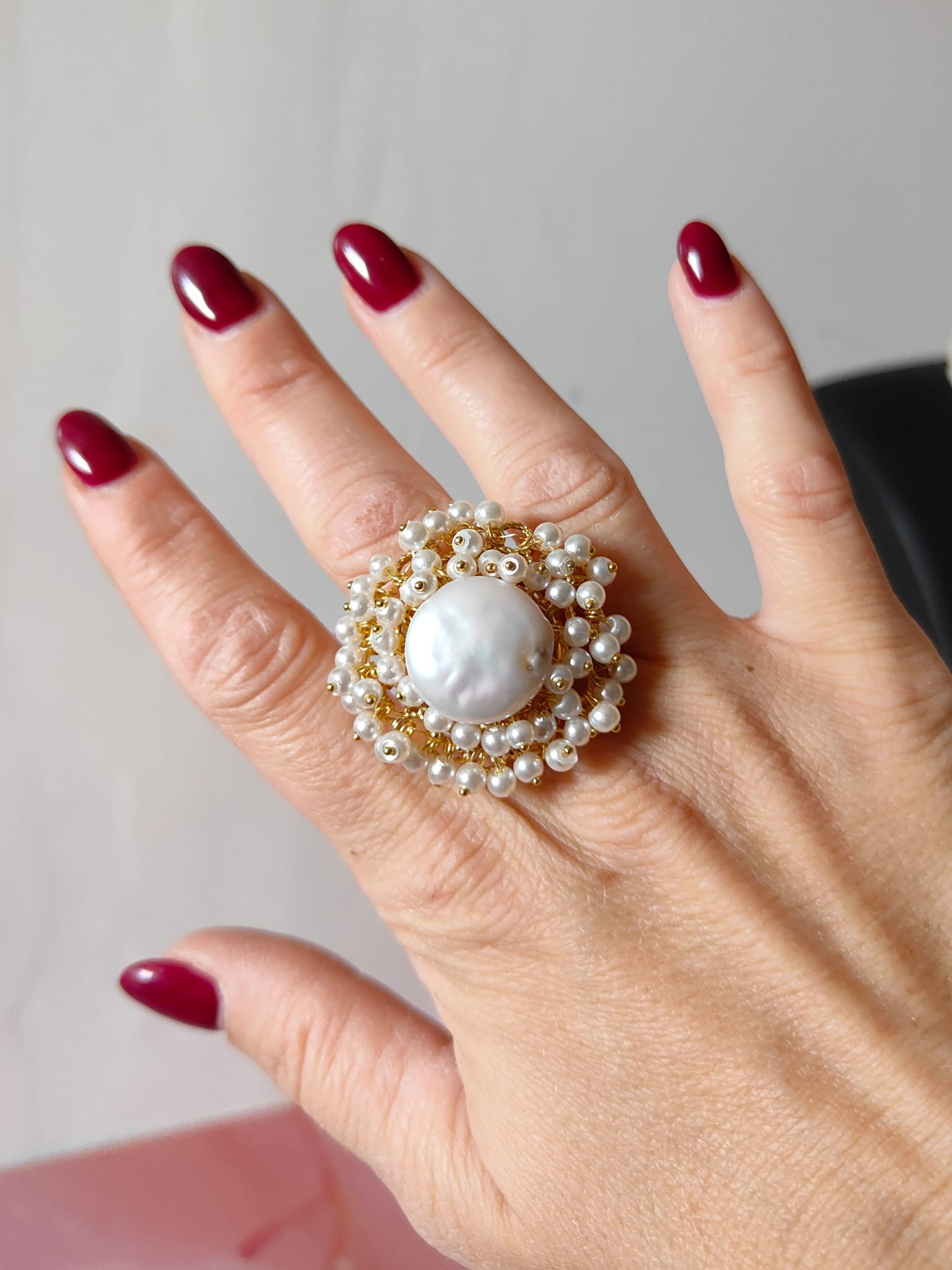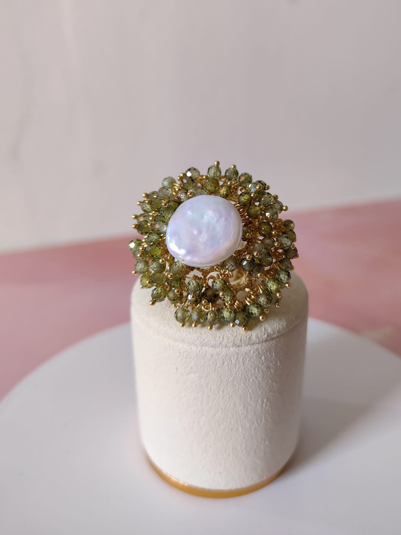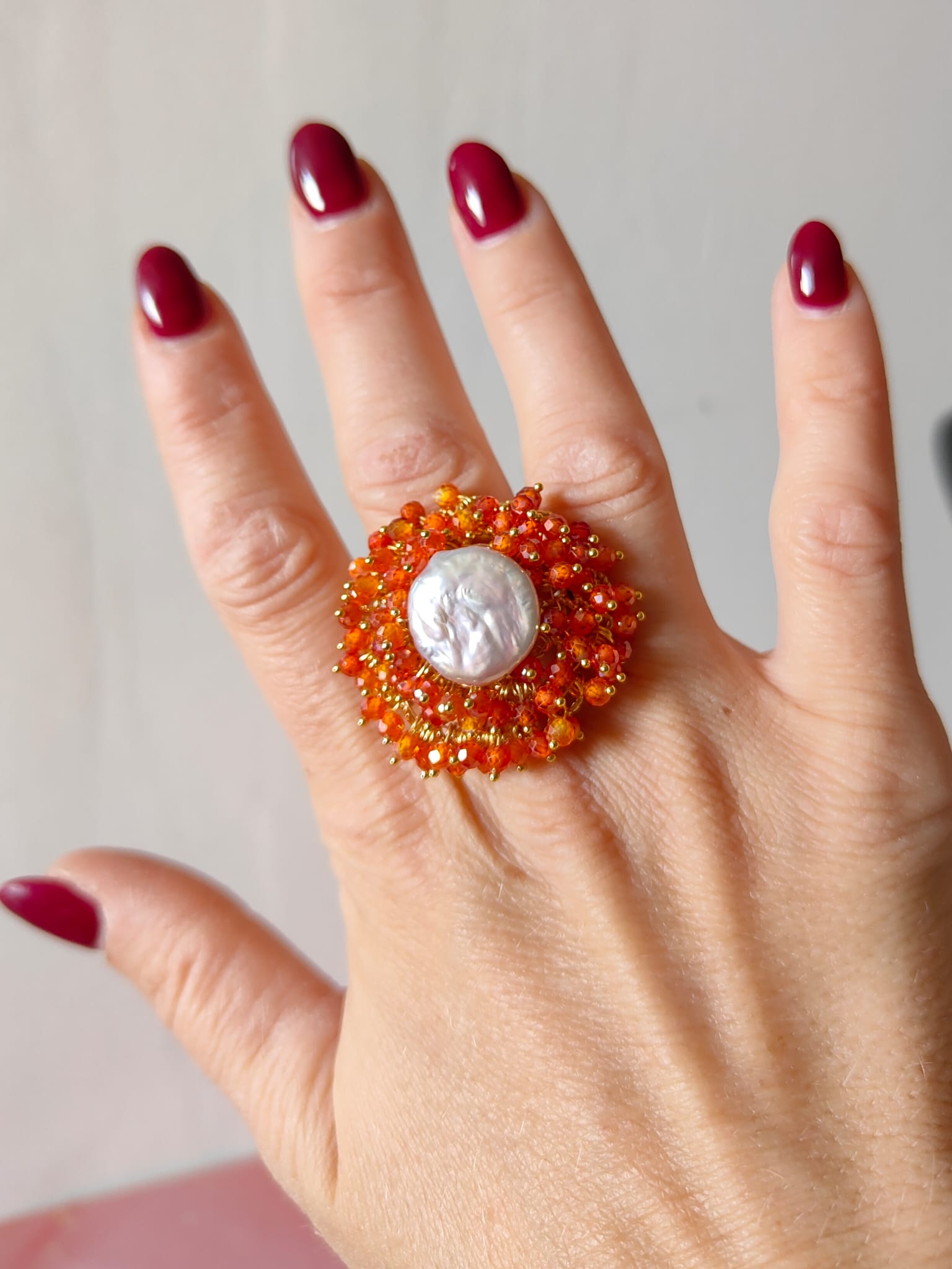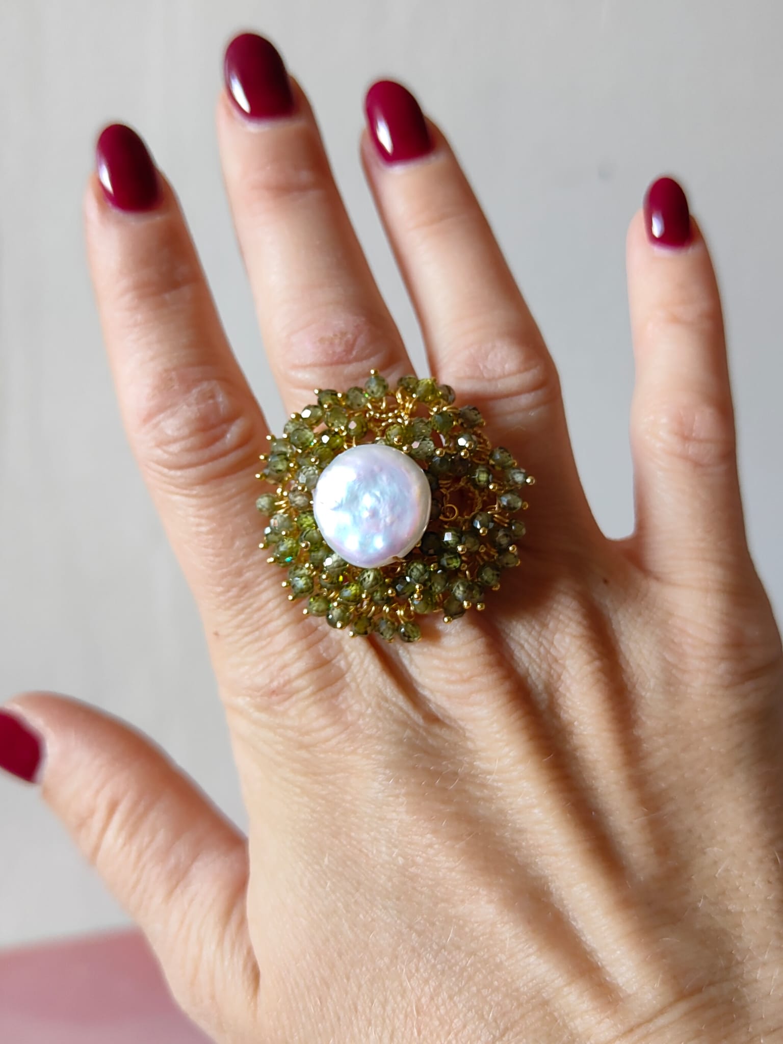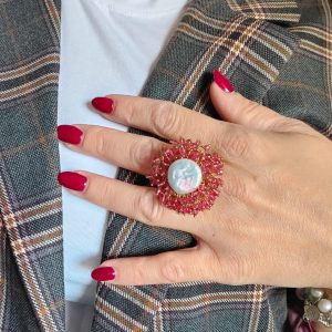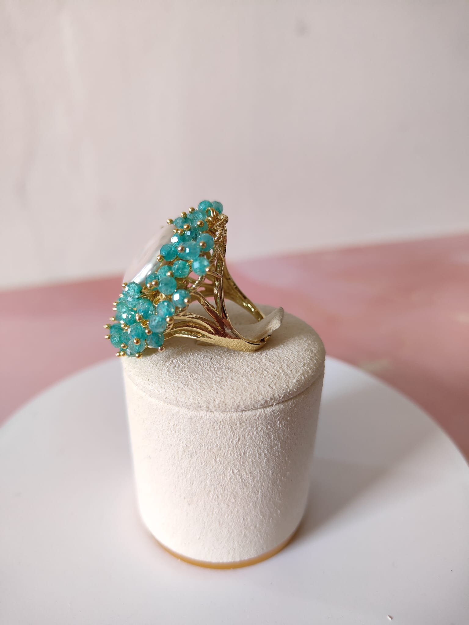 L’anello perla e cristalli è una celebrazione di luce, colore e artigianalità. Ogni dettaglio è pensato per creare un gioiello che unisce eleganza e personalità, rendendo unico ogni gesto di chi lo indossa.