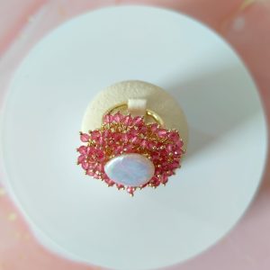 Disponibile in una vivace gamma di colori — dal rosso rubino al verde smeraldo, dal blu intenso al giallo solare — l’anello perla e cristalli si trasforma in un accessorio versatile e allegro.