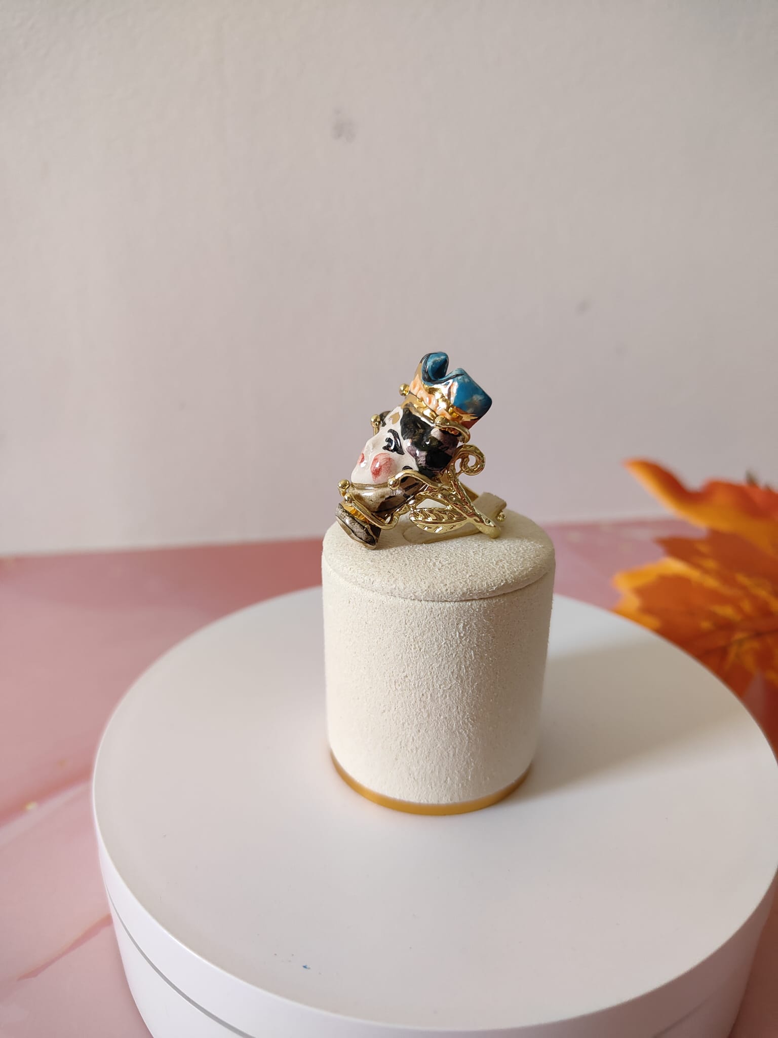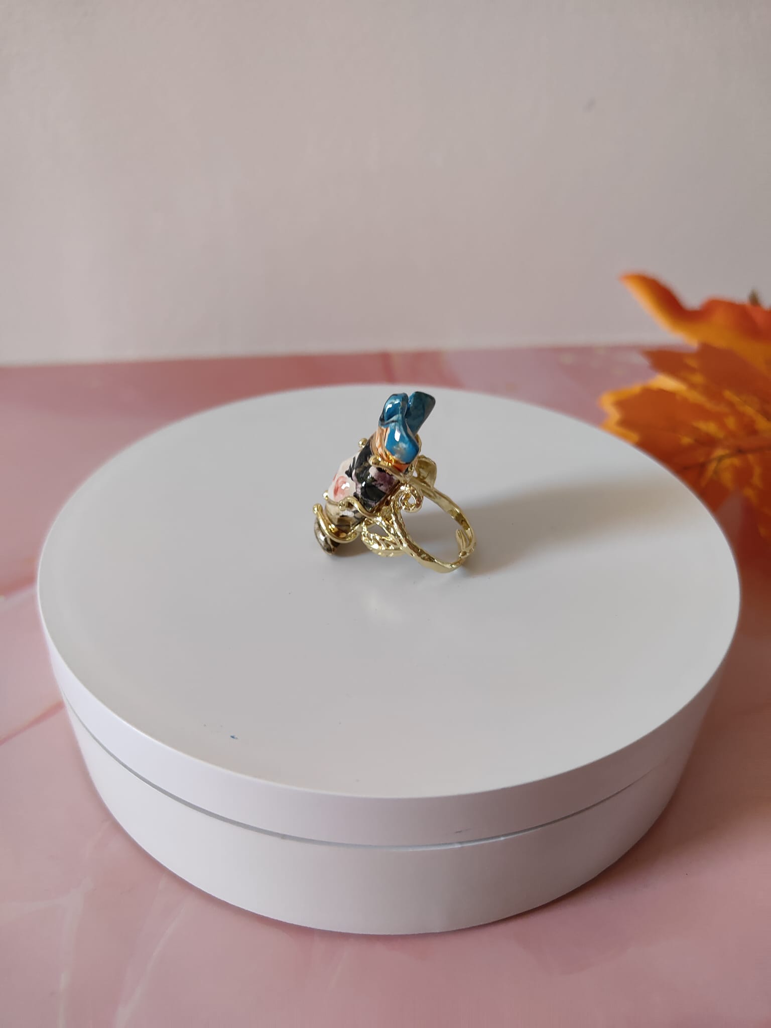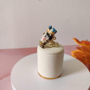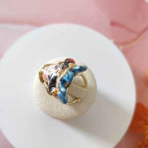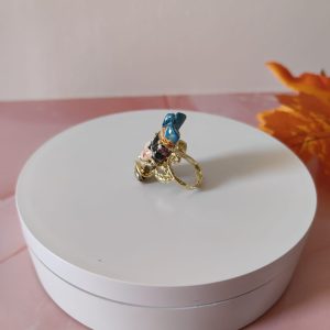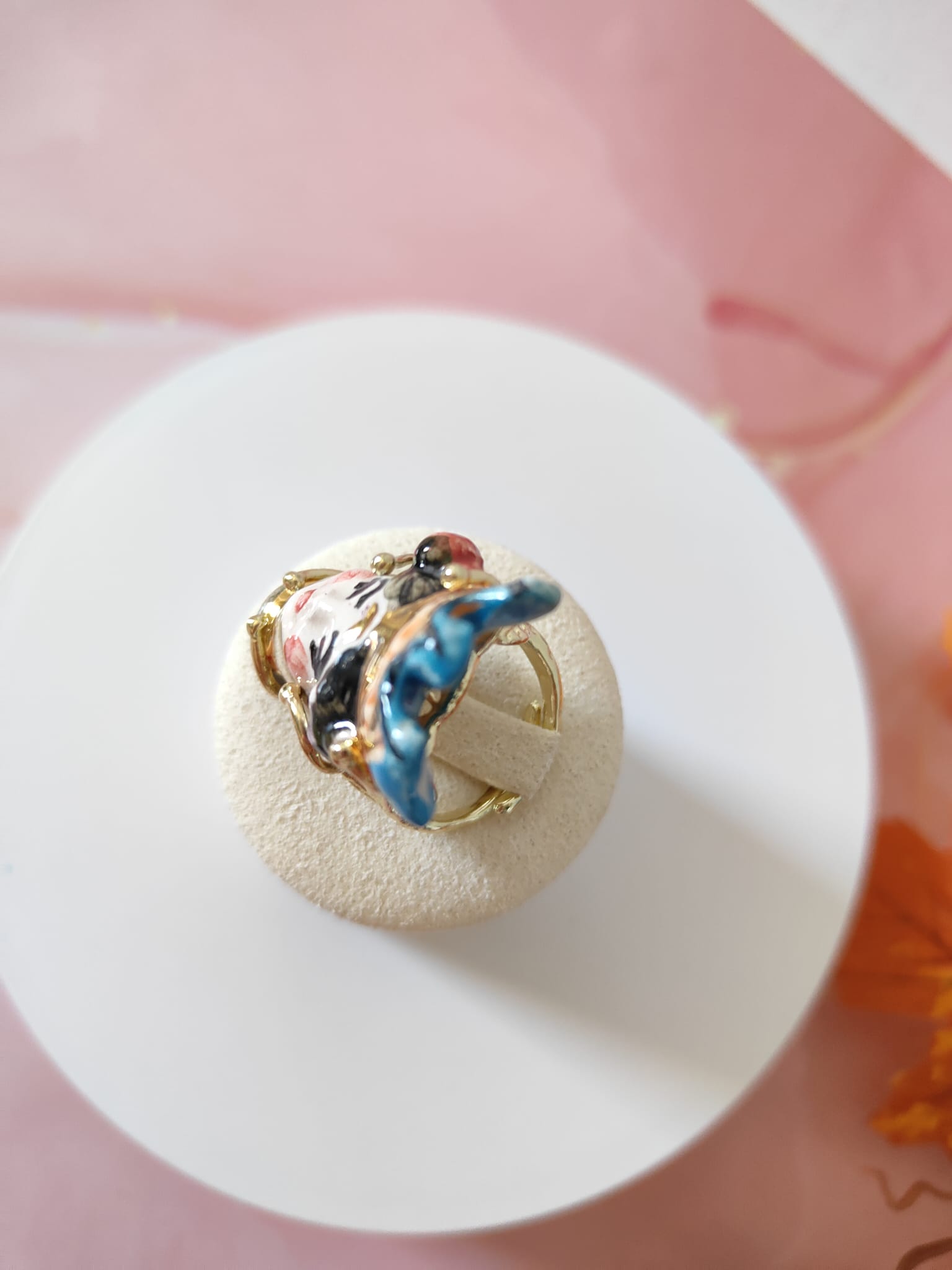 La montatura è in ottone anallergico, resistente e piacevole da indossare, perfetta anche per le pelli più sensibili. L’anello è regolabile, adattandosi facilmente a diverse misure senza perdere stabilità o comodità. Il decoro in ceramica, rifinito con smalti brillanti, rende il gioiello luminoso e raffinato, ideale per chi ama distinguersi con un tocco di originalità.