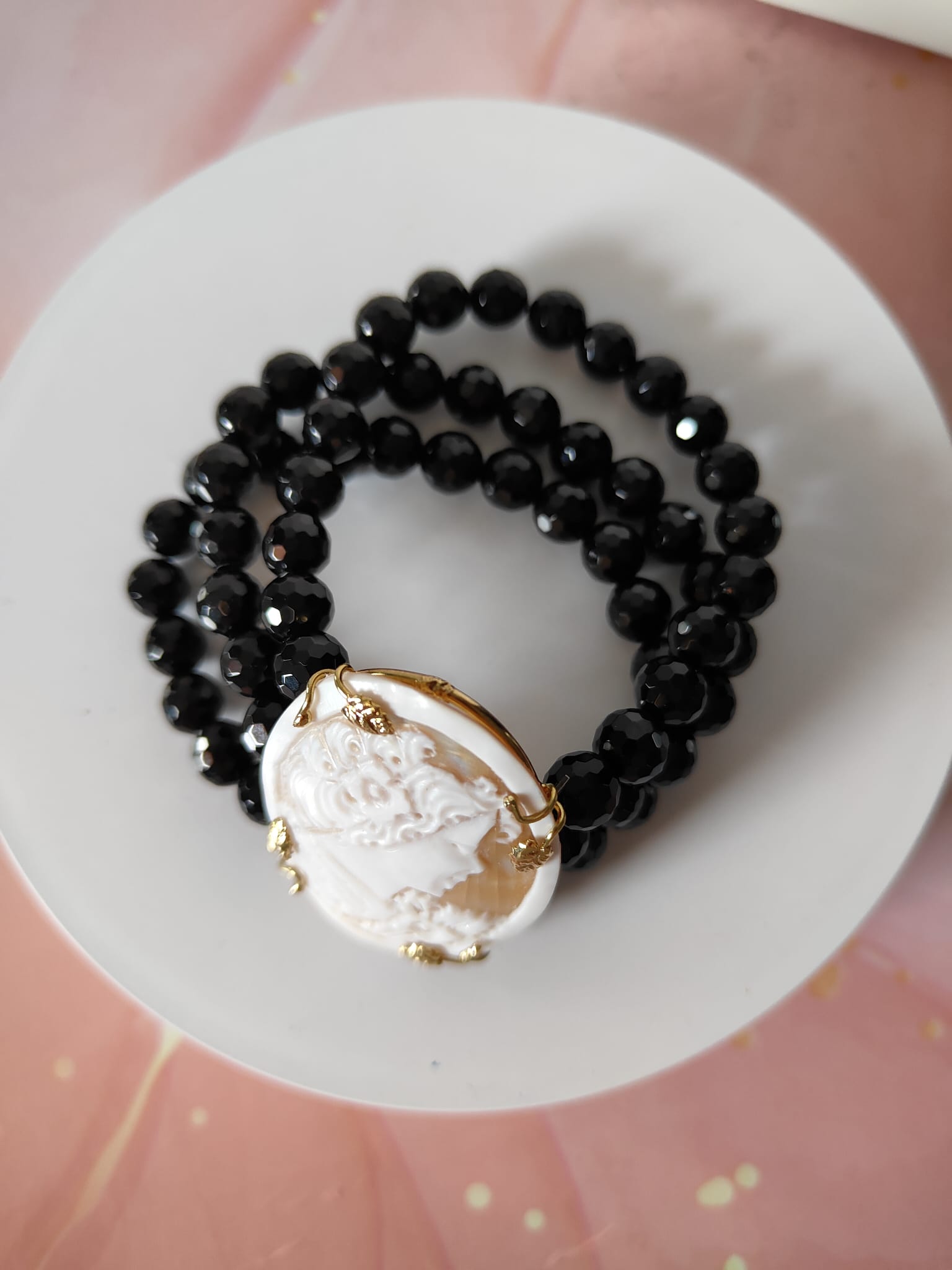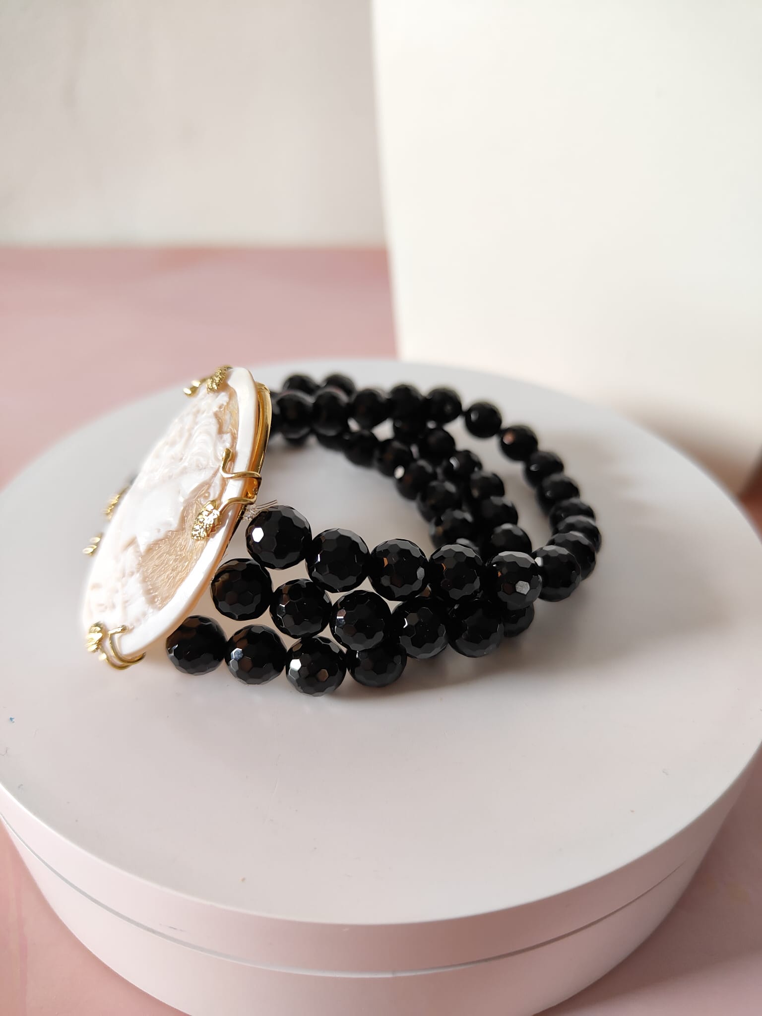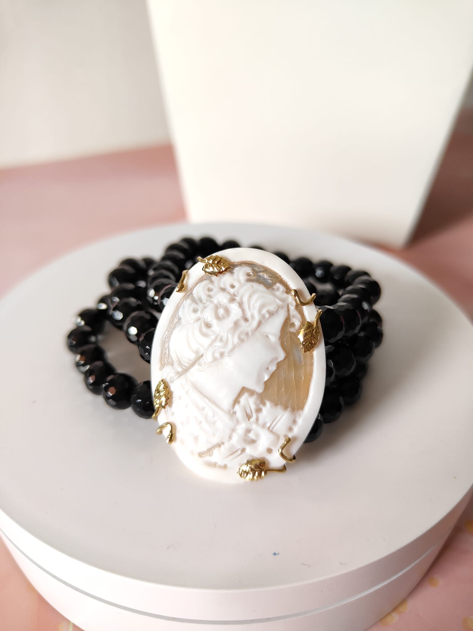 Ogni bracciale cammeo e onice nero è interamente realizzato a mano, con attenzione ai dettagli e all’autenticità dei materiali.