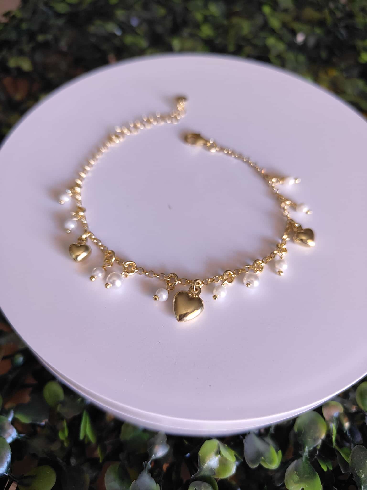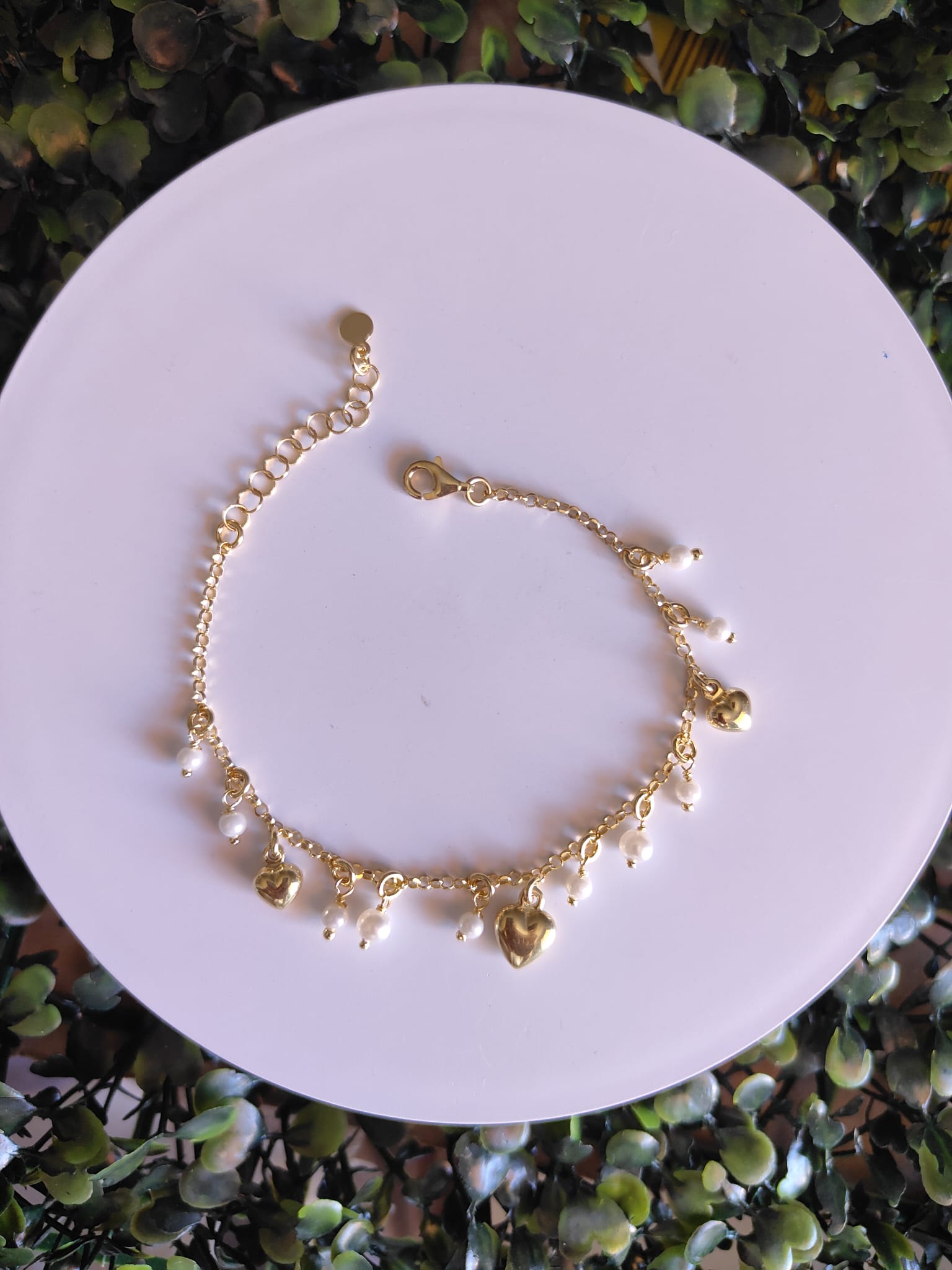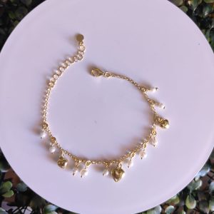 Il bracciale cuori e perle dorato è un gioiello che conquista per la sua eleganza senza tempo. Delicato, romantico e versatile, aggiunge luce e dolcezza a ogni look.