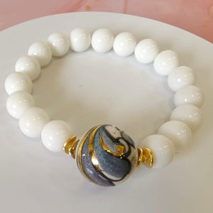 Questo bracciale agata e ceramica dipinta è una creazione artigianale elegante e luminosa, pensata per chi ama gioielli raffinati ma dal carattere deciso. Il bianco dell’agata crea una base pulita e senza tempo. Allo stesso tempo, la ceramica dipinta a mano introduce un accento artistico che rende il bracciale distintivo.