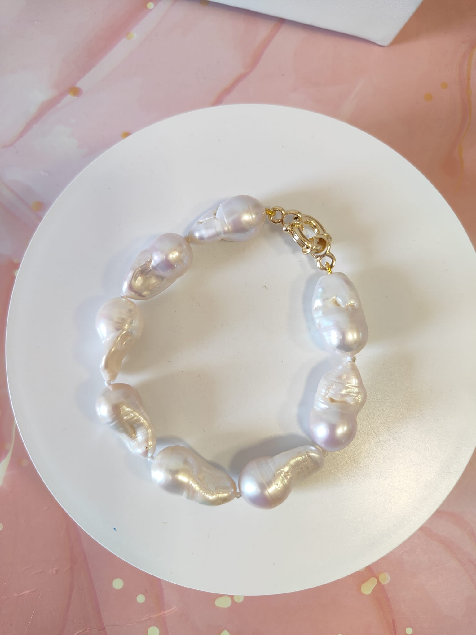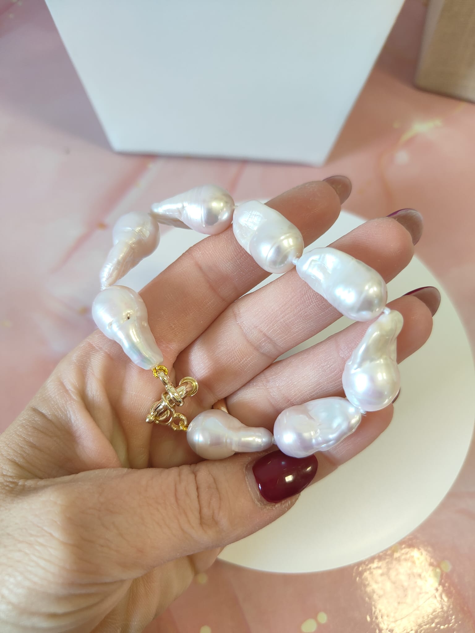 Ogni bracciale perle barocche è realizzato completamente a mano. Le perle vengono annodate singolarmente su un filo resistente, secondo la tradizione della gioielleria artigianale. Questa tecnica non solo garantisce solidità, ma conferisce anche un tocco raffinato e naturale.