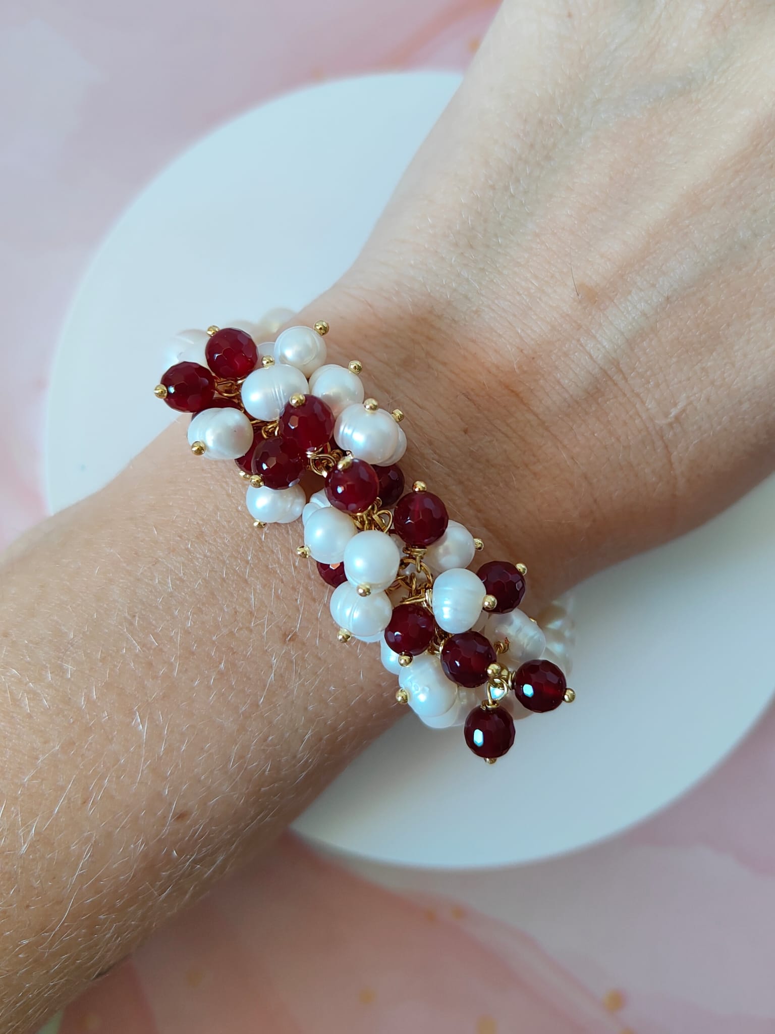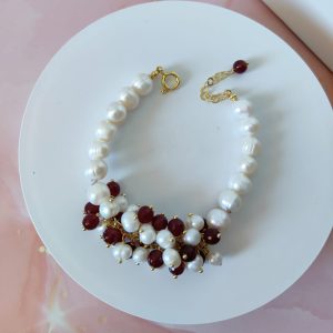 Un gioiello che unisce eleganza classica e fascino contemporaneo: il bracciale perle e agata borgogna è una creazione artigianale dal carattere raffinato e deciso.