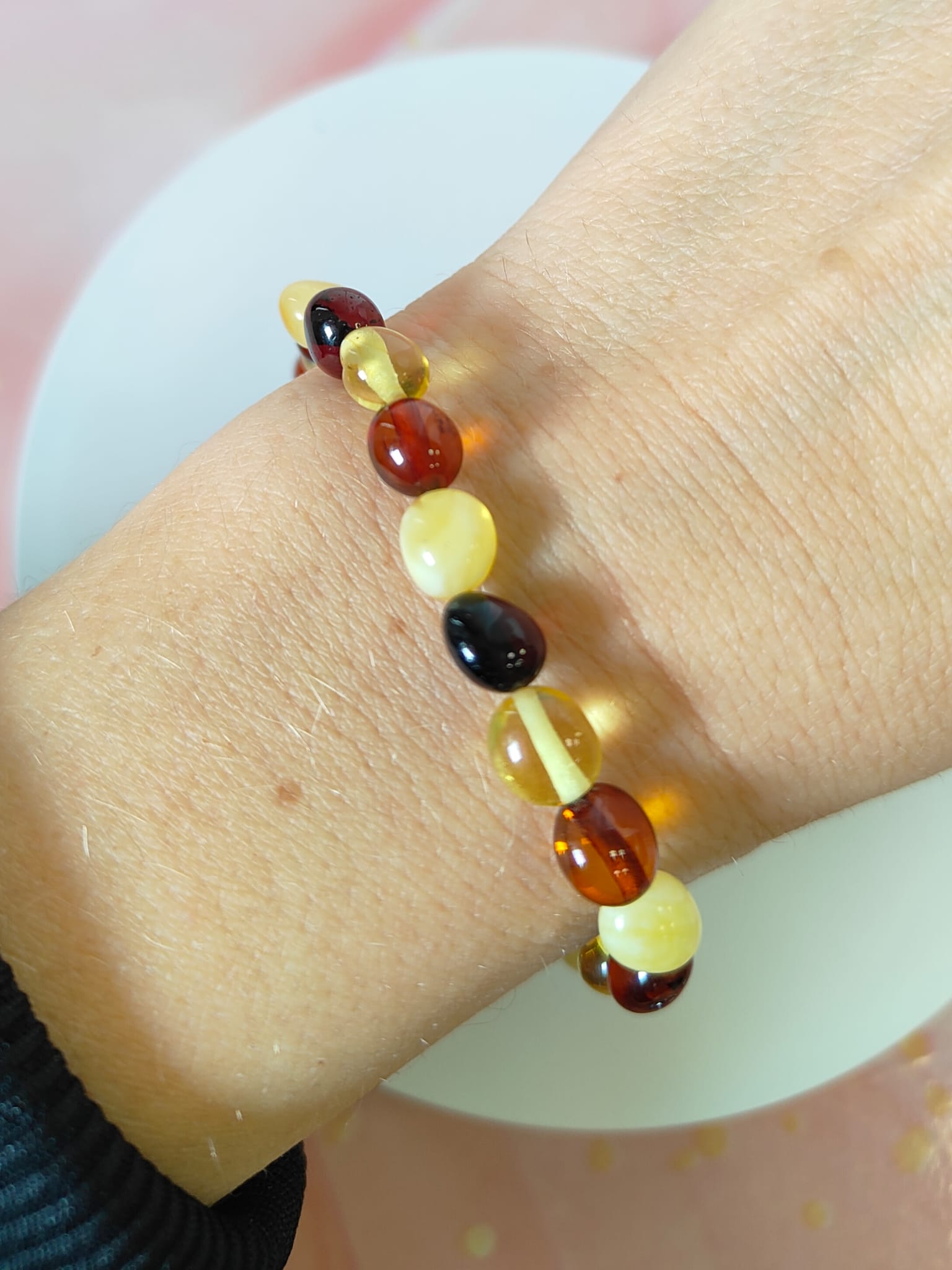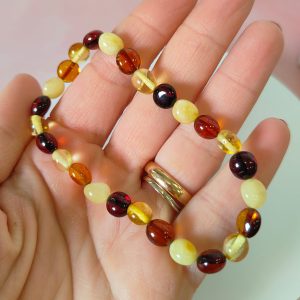 La struttura elastica, morbida e resistente, garantisce una vestibilità comoda e adattabile al polso, rendendo il gioiello semplice da indossare e piacevole da portare per l’intera giornata. La scelta di utilizzare perle di ambra dalle forme lievemente irregolari esalta la natura organica del materiale, valorizzando le sue inclusioni e le trasparenze tipiche che rendono ogni elemento leggero e unico. I Bracciali Ambra Naturale, grazie alla loro leggerezza, sono perfetti anche per chi preferisce accessori poco invasivi, senza rinunciare a un tocco di colore e personalità.