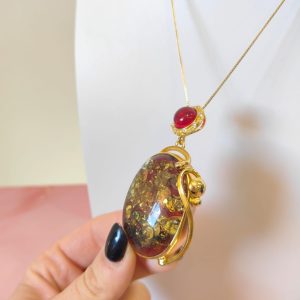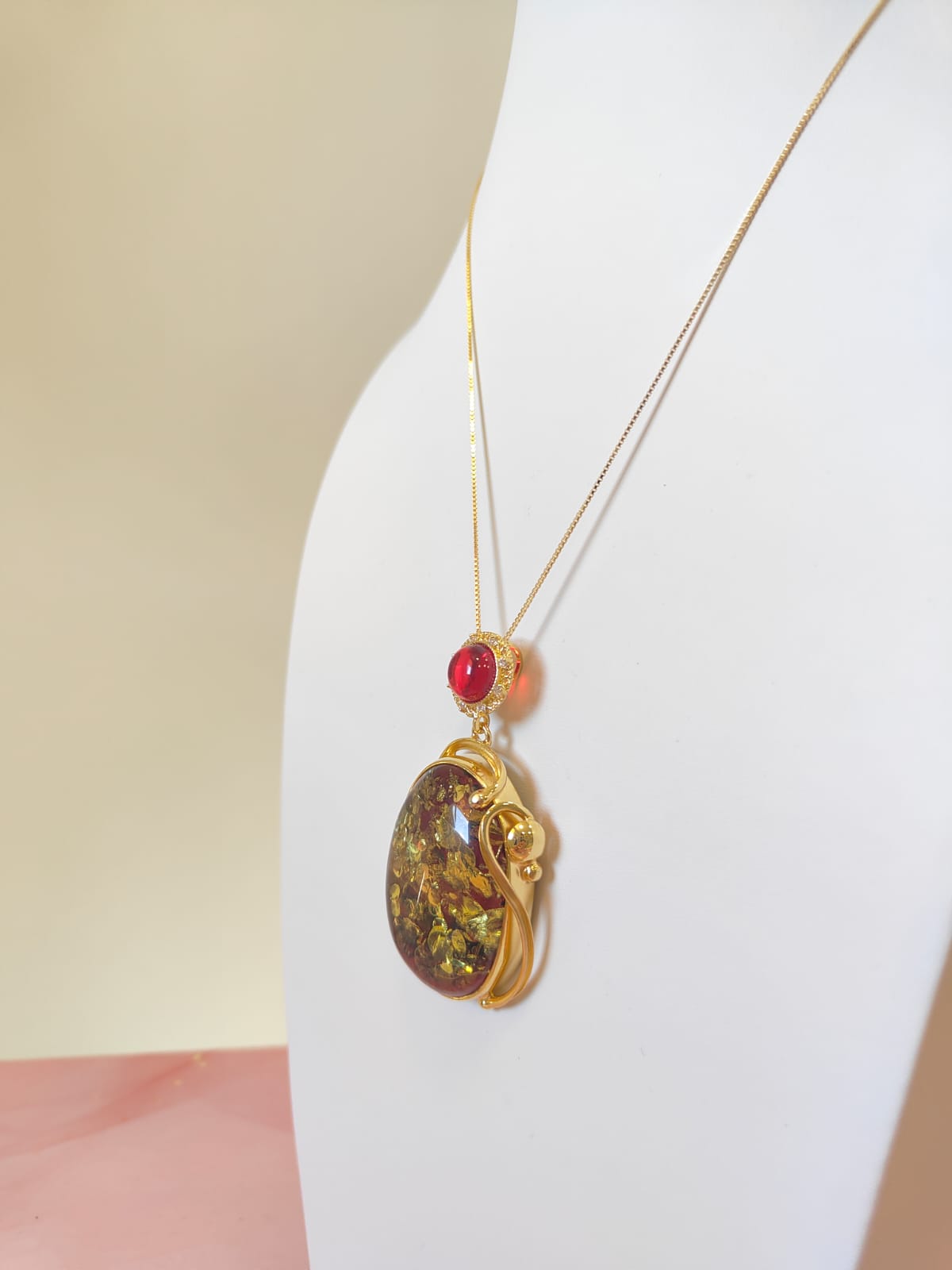 Ciondolo Ambra Baltica Su Collana In Argento Dorato