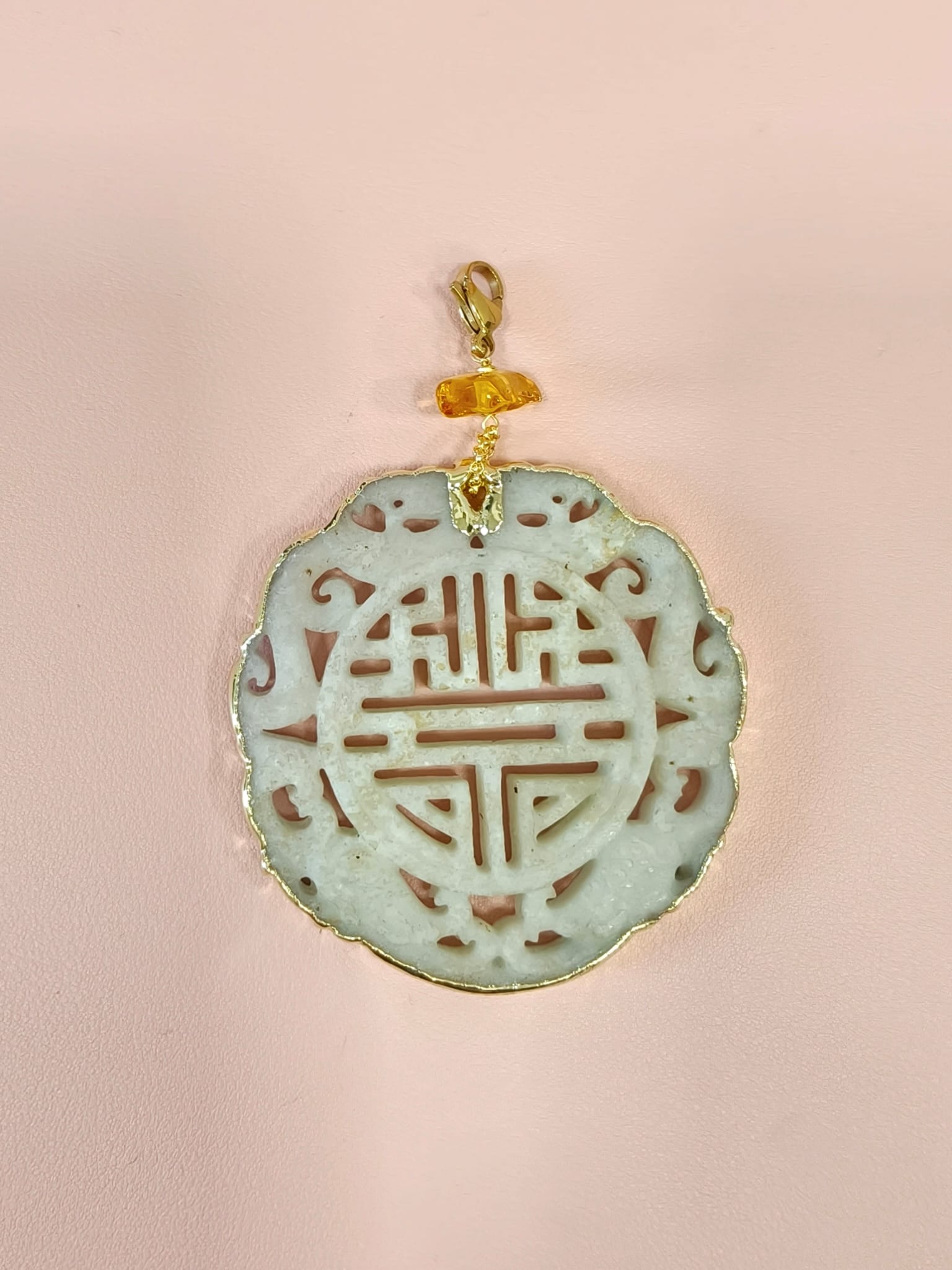 ciondolo mandala giada con ambra: caratteristiche tecniche