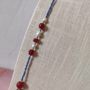 La collana agata borgogna e zirconi blu cattura lo sguardo con la sua raffinata combinazione di colori e materiali. Una creazione lunga e sinuosa, che unisce la profondità vibrante dei zirconi blu alla calda eleganza dell’agata borgogna e alla luminosità delle perle barocche. Il risultato è un gioiello dallo stile sofisticato e contemporaneo, capace di accendere ogni look con un tocco di classe.