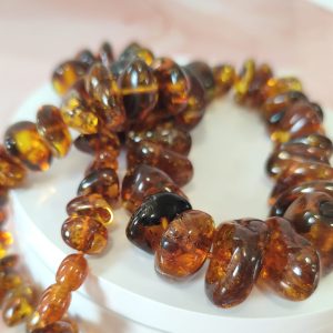 Questa collana ambra autentica baltica è un gioiello creato per valorizzare l’ambra nella sua forma più vera. Ogni elemento è naturale, levigato e ricco di inclusioni che catturano la luce. Il colore varia dal miele chiaro al cognac scuro, creando un ritmo caldo e armonioso. Inoltre, la trasparenza della resina amplifica la luminosità del pezzo e lo rende visibile da ogni angolazione.