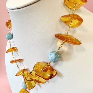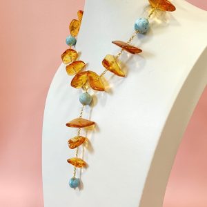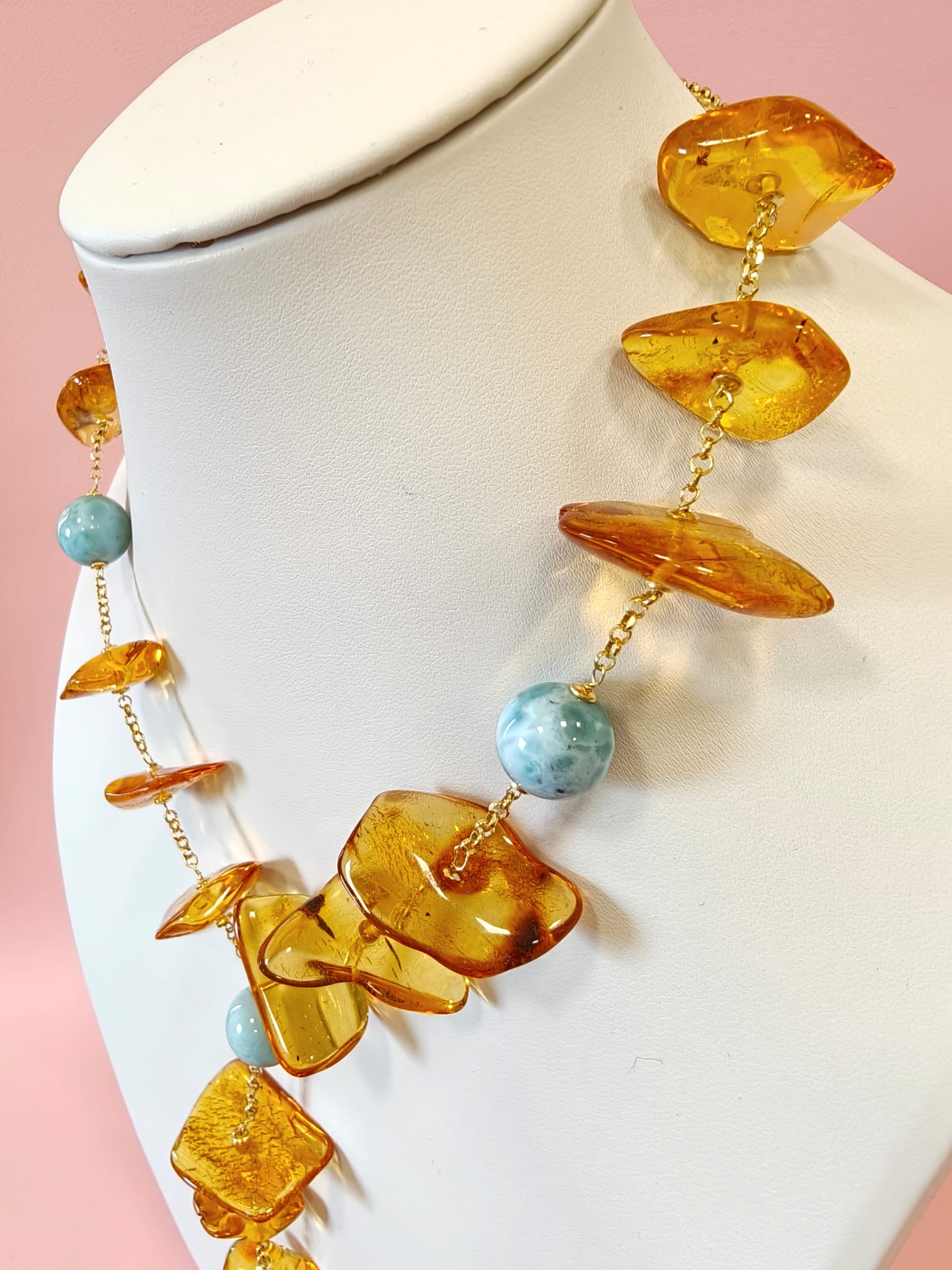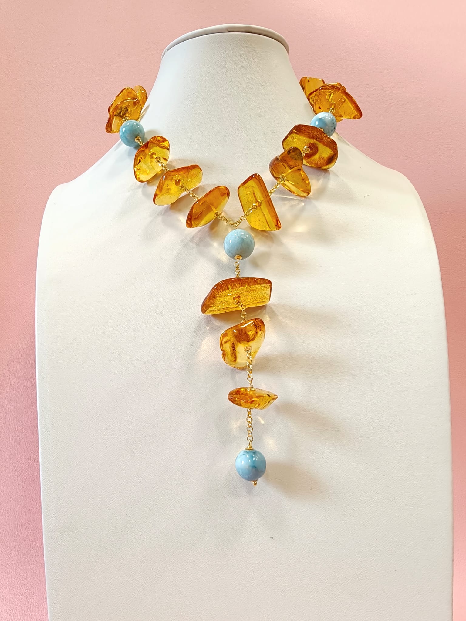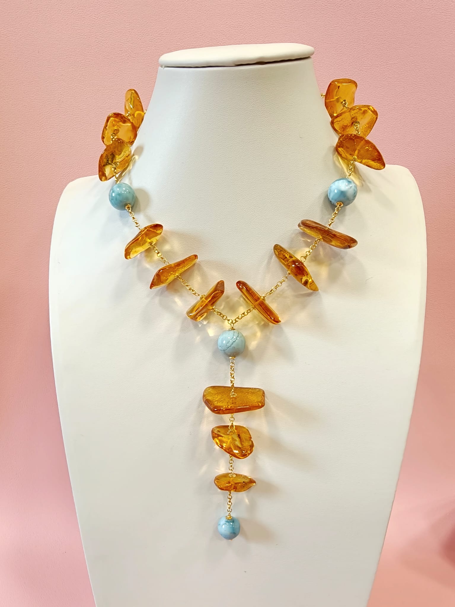 Raffinatezza Naturale: Collana Ambra Baltica E Larimar