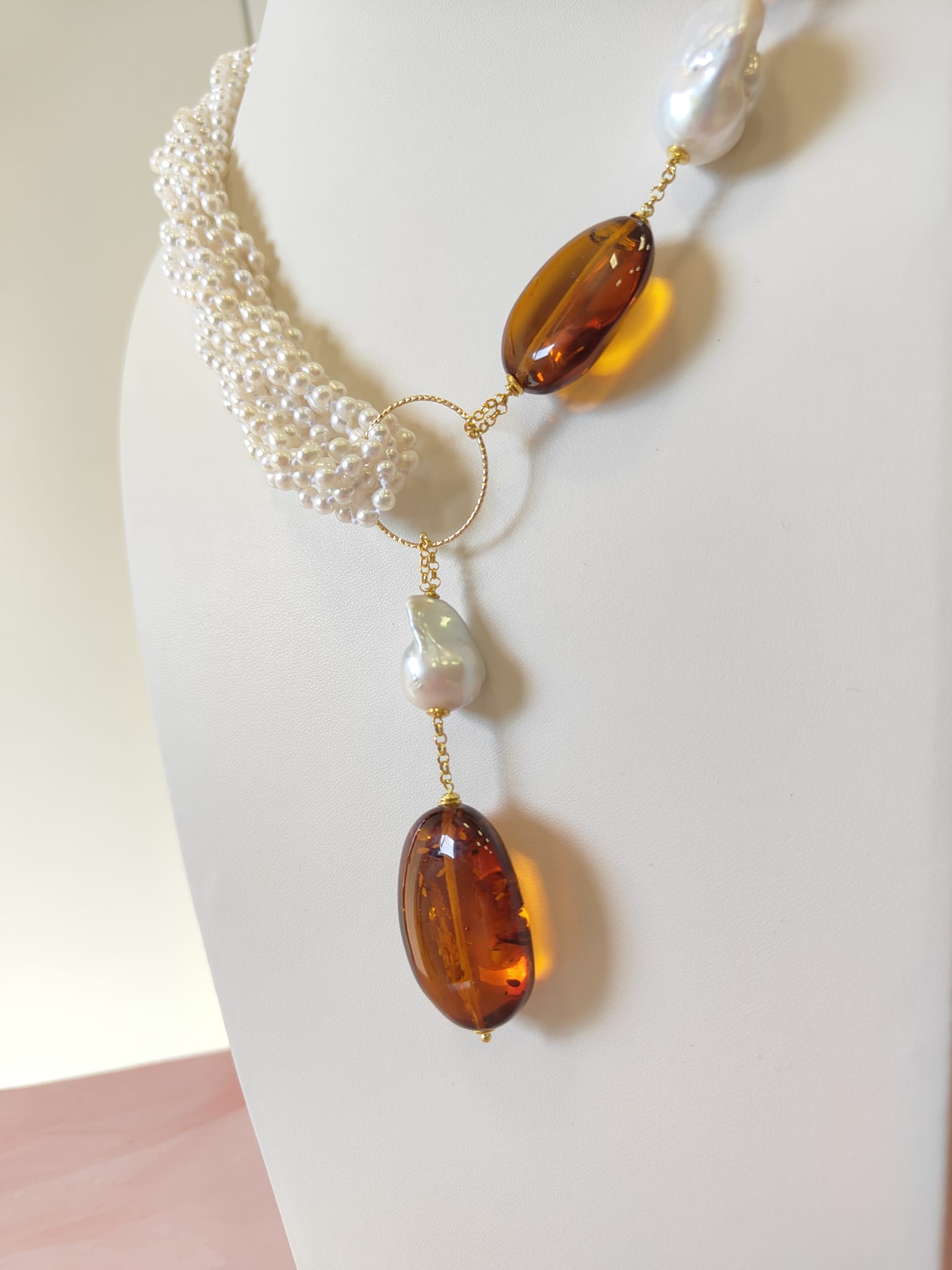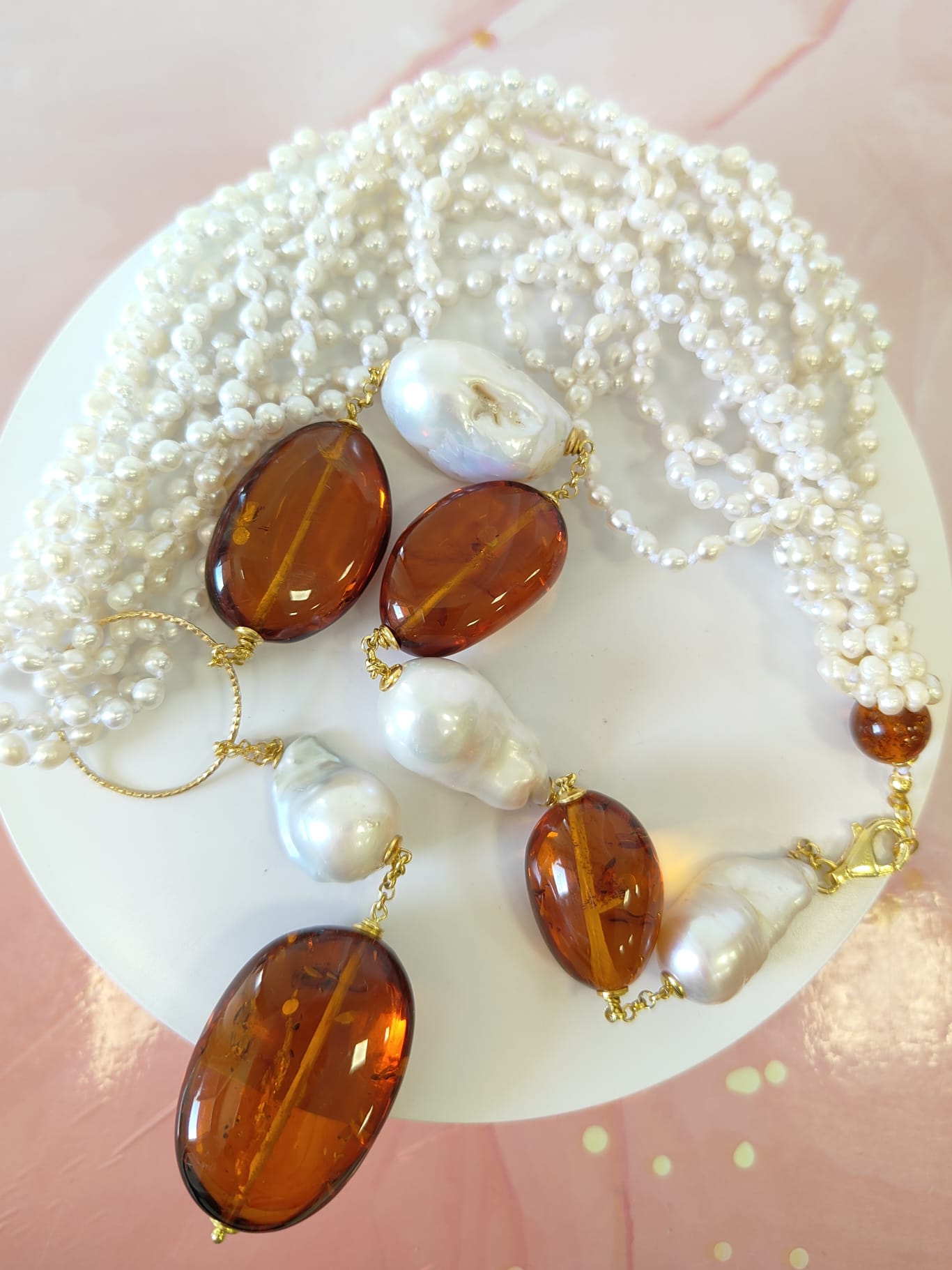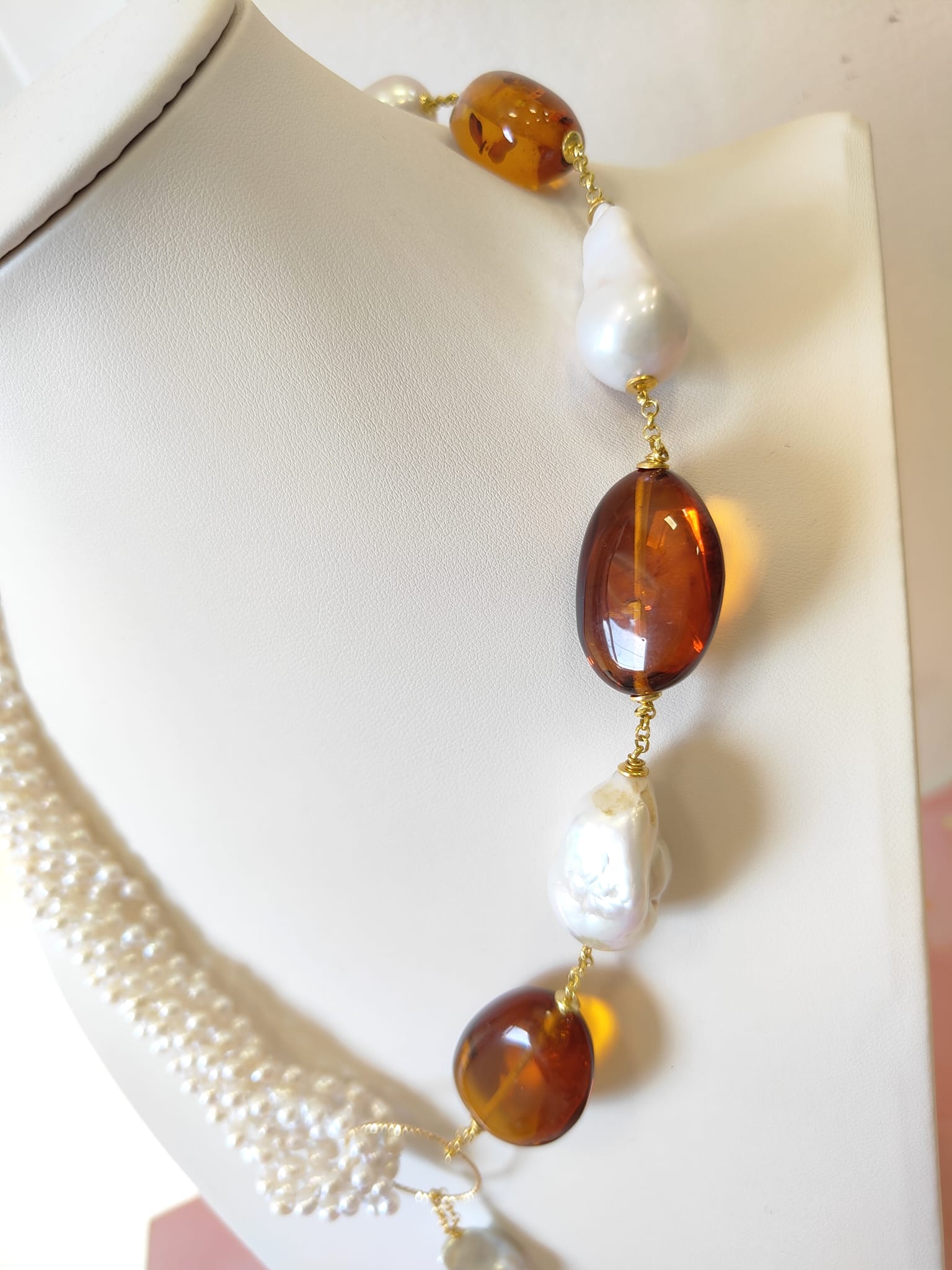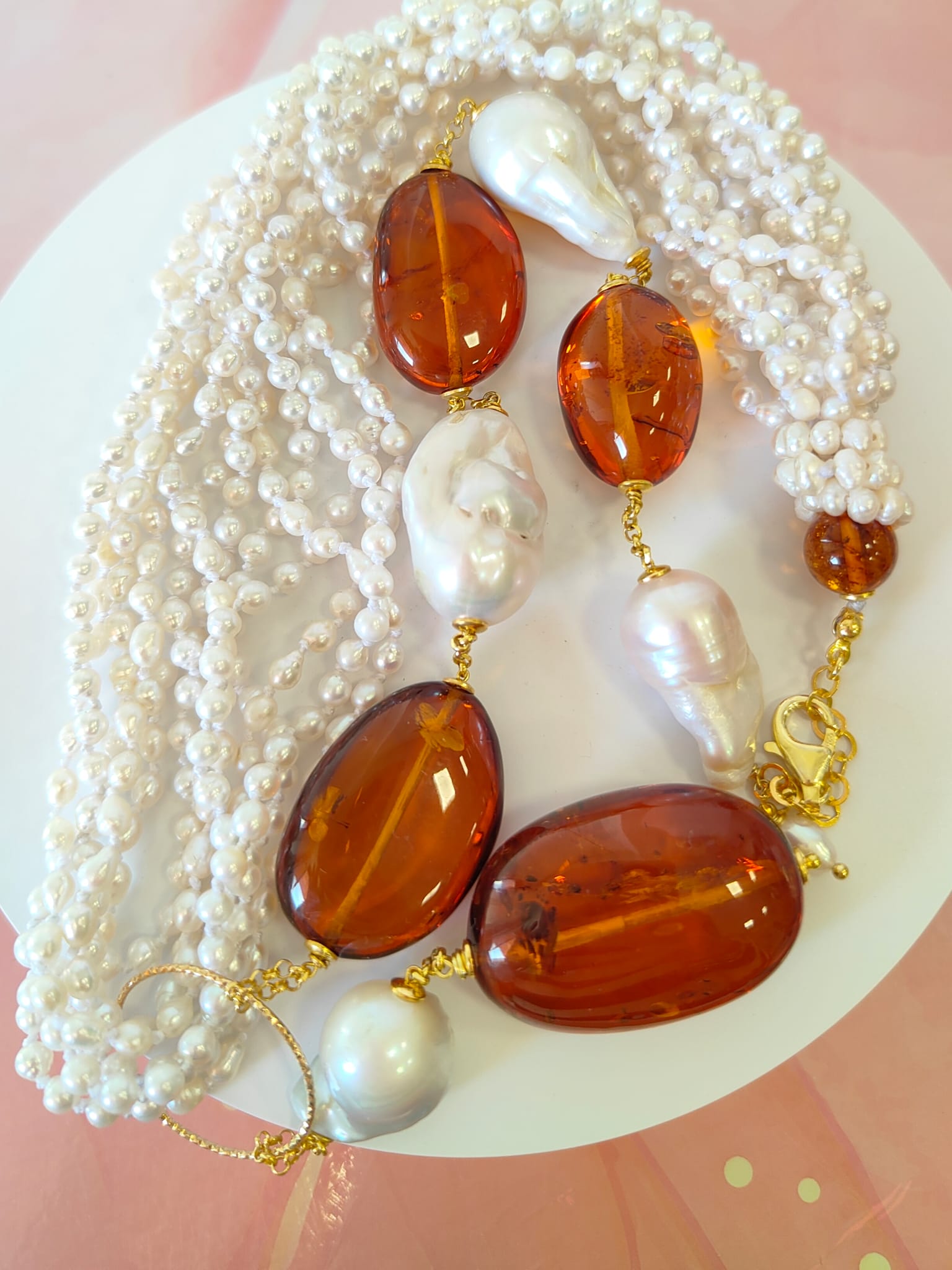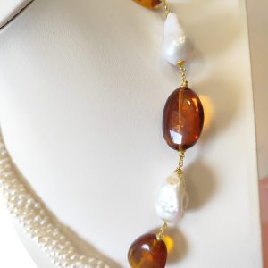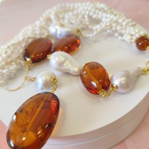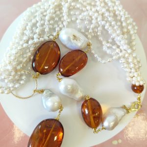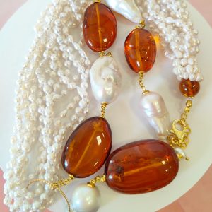 Materiali: perle naturali, ambra baltica naturale