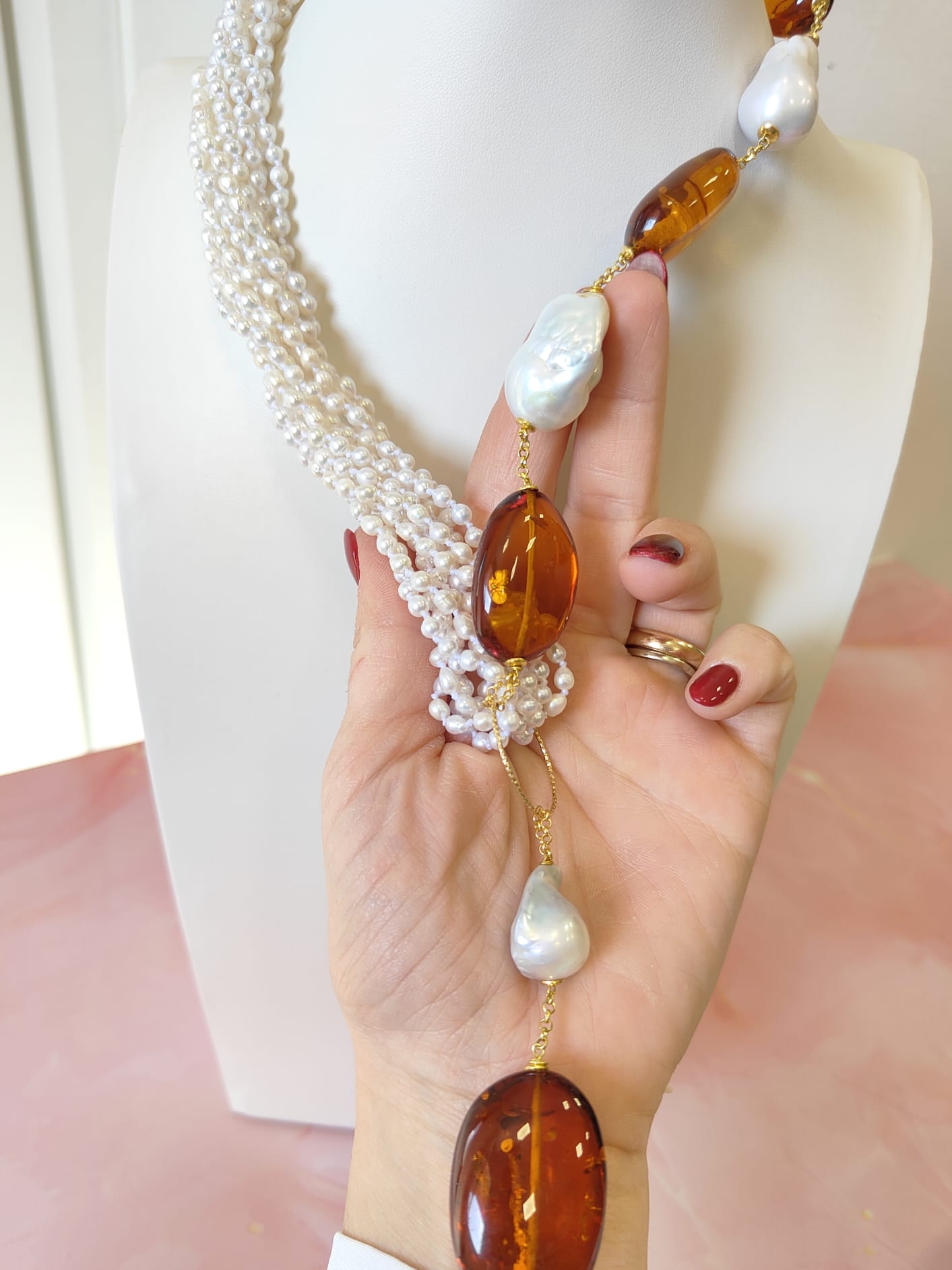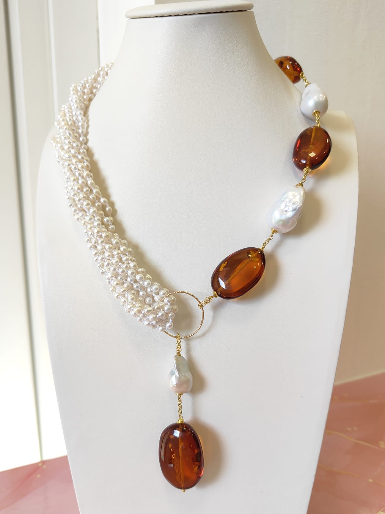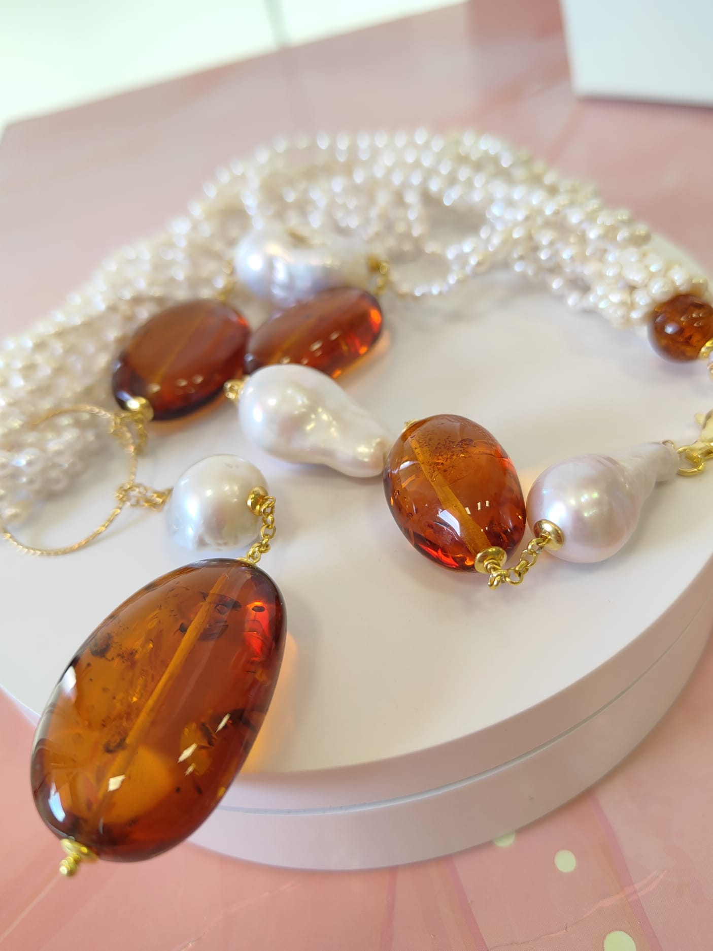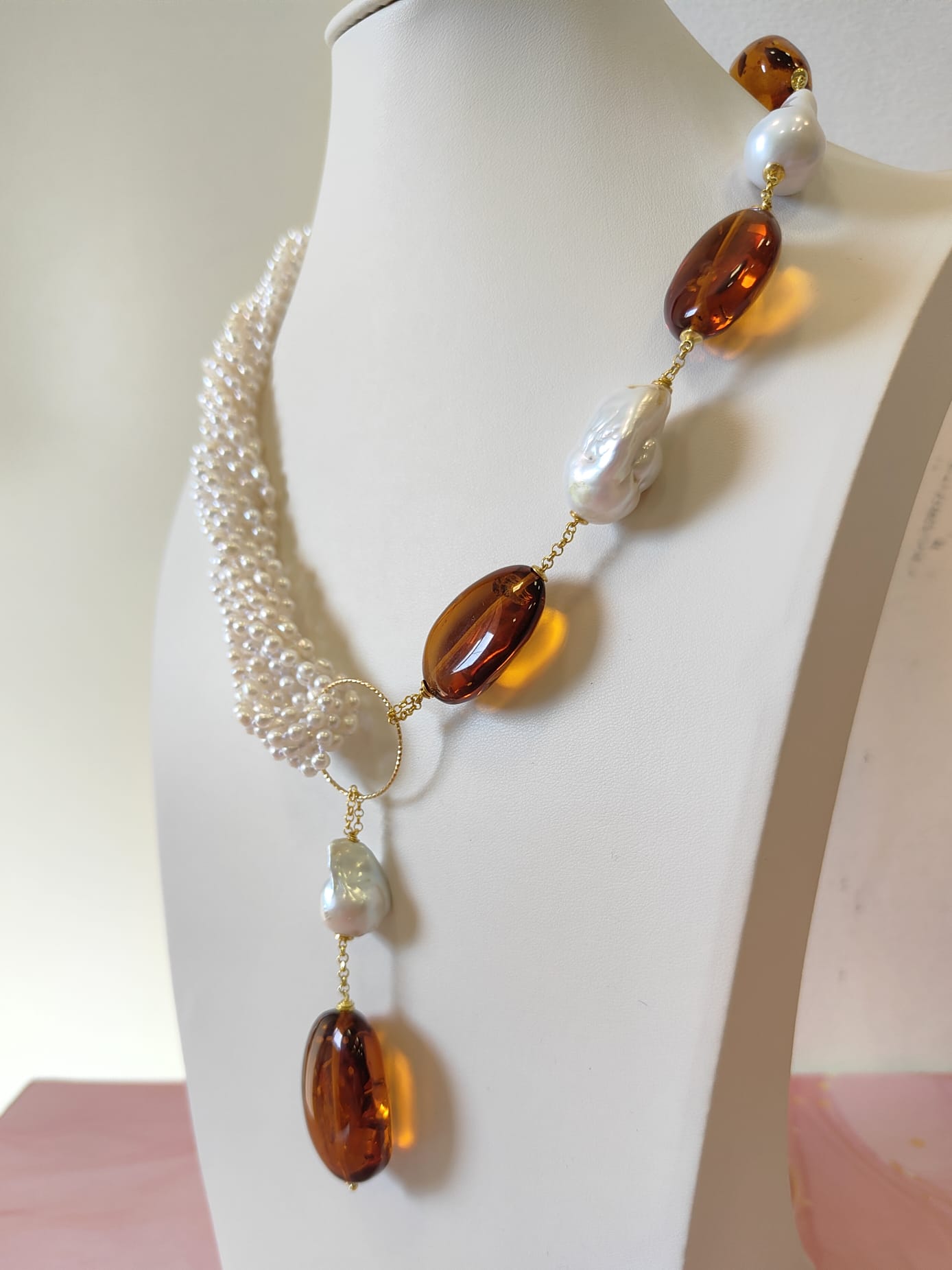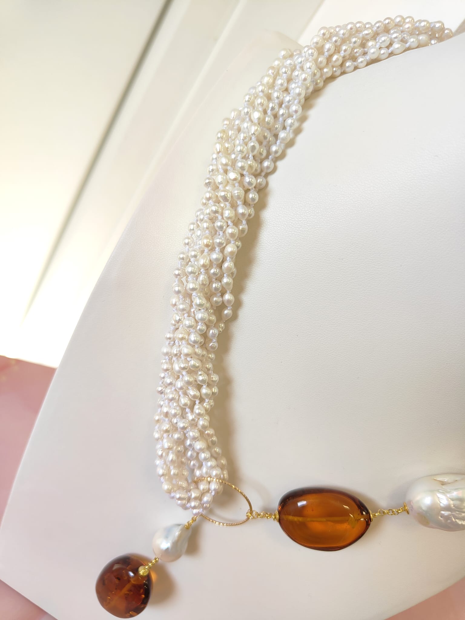 Materiali: perle naturali, ambra baltica naturale