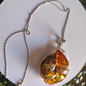 Questa collana non è solo un accessorio, ma un vero frammento di storia naturale da indossare. Le tonalità multicolori dell’ambra la rendono versatile, perfetta da abbinare ad altri gioielli in argento o da indossare come protagonista assoluta del tuo outfit.