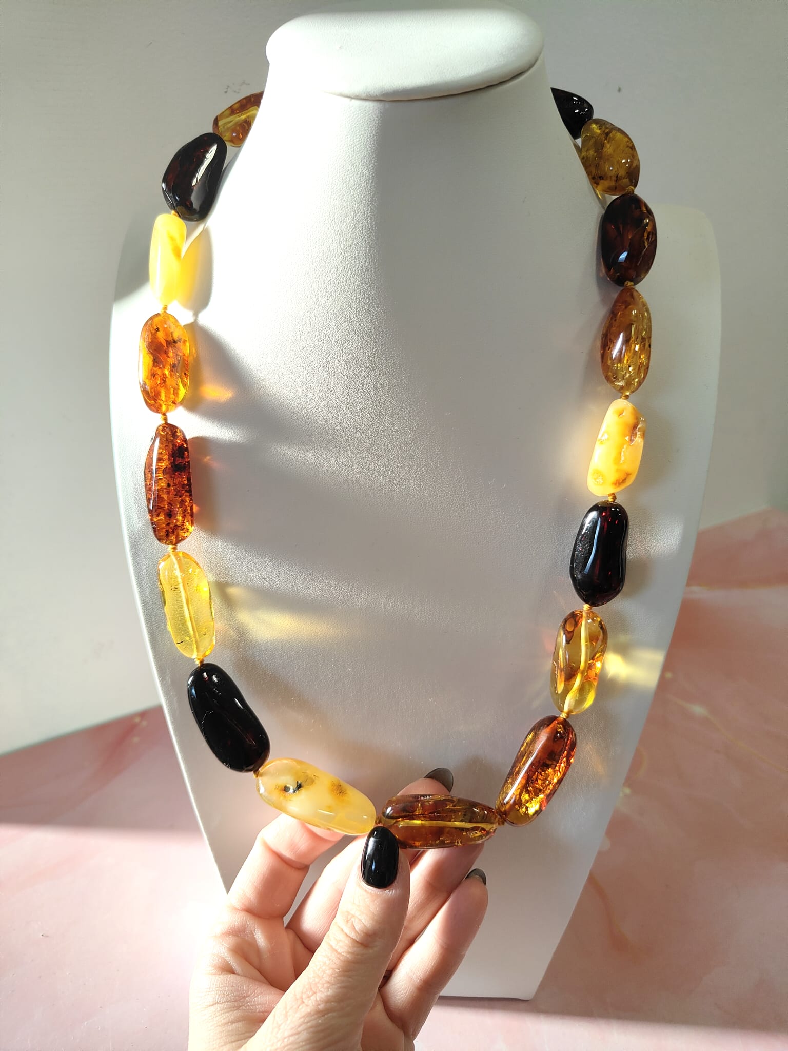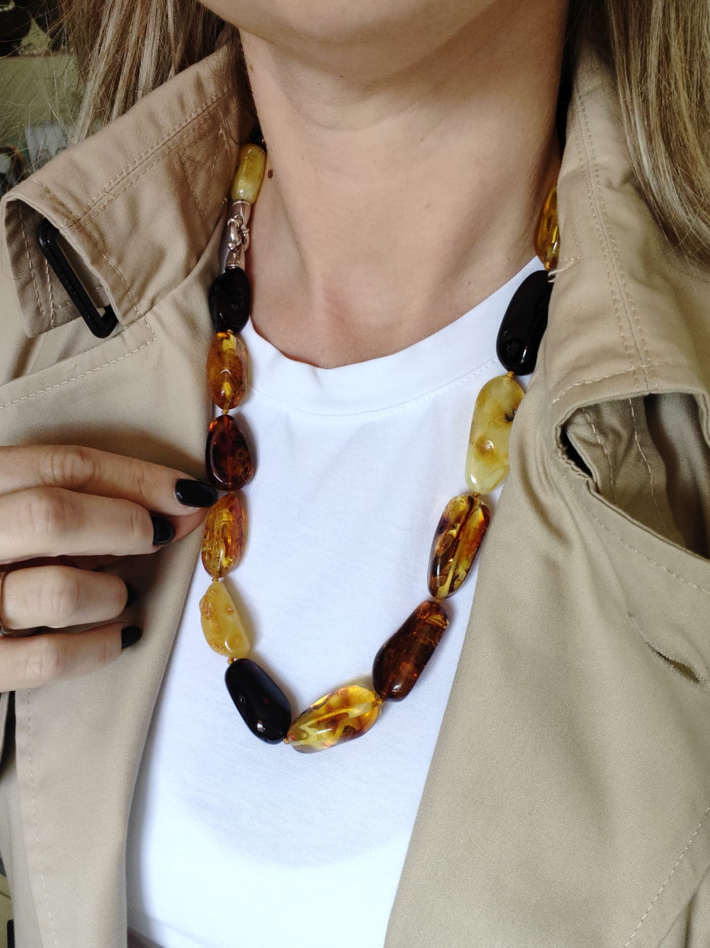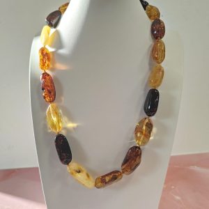 La collana ambra naturale è un inno alla bellezza autentica e alla forza gentile della natura. Ogni pietra, levigata e selezionata con cura, conserva il fascino antico dell’ambra baltica, che per secoli è stata considerata simbolo di calore, luce e vitalità.