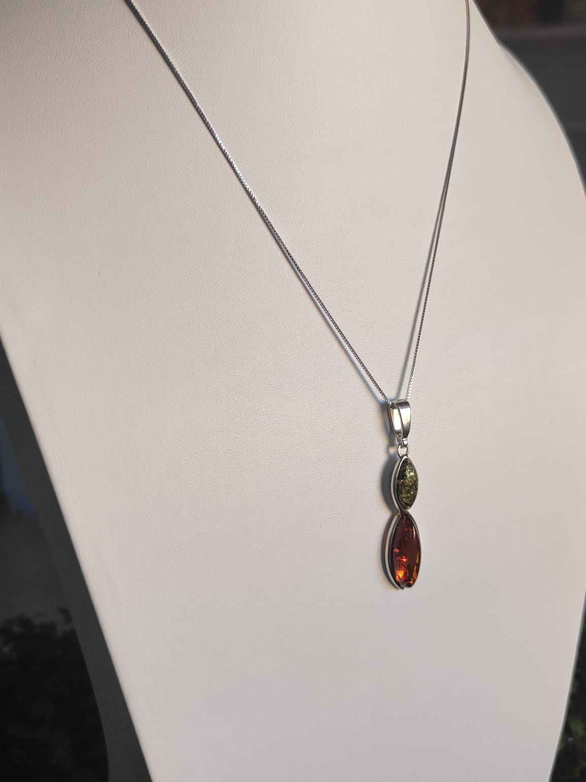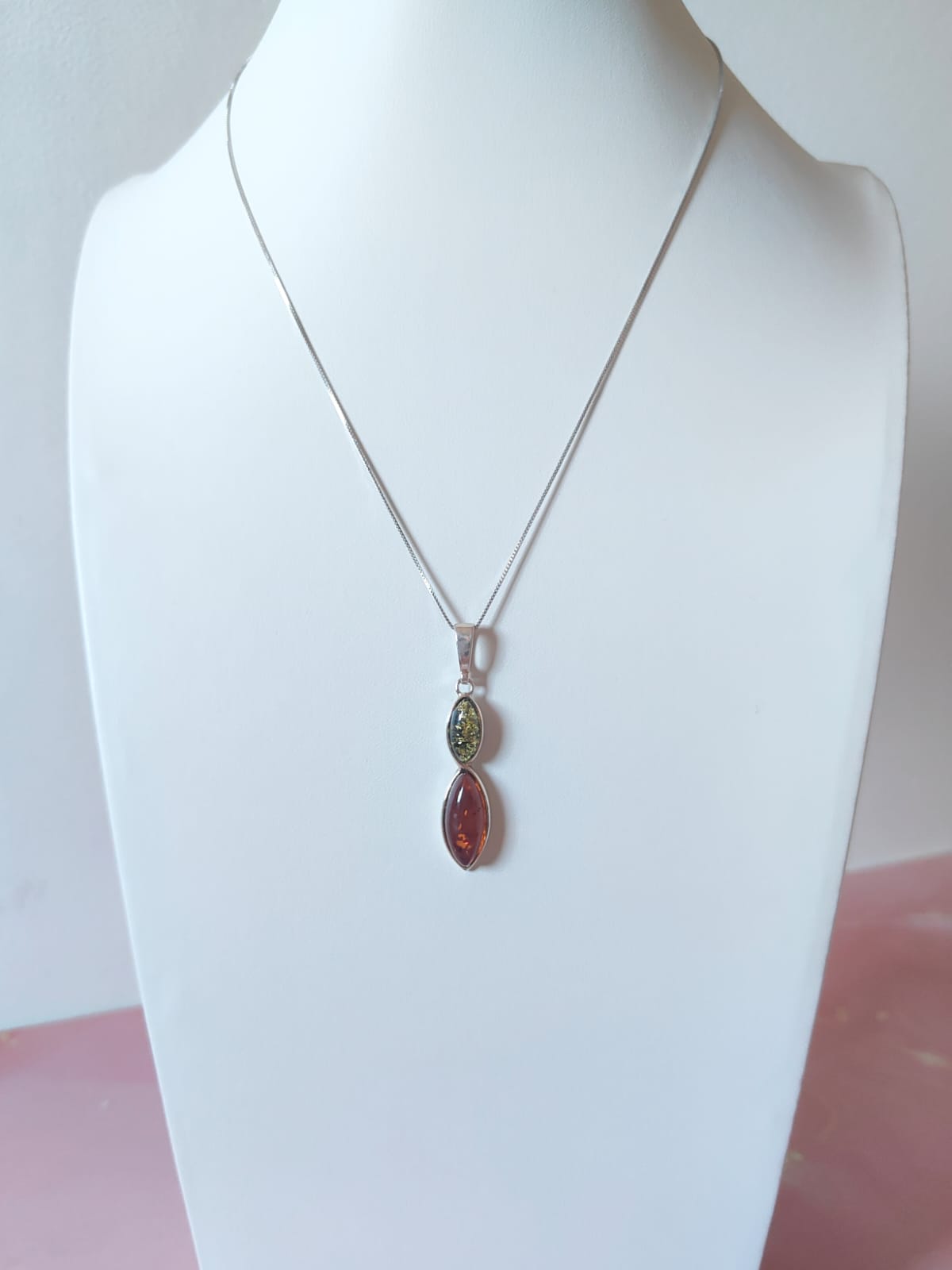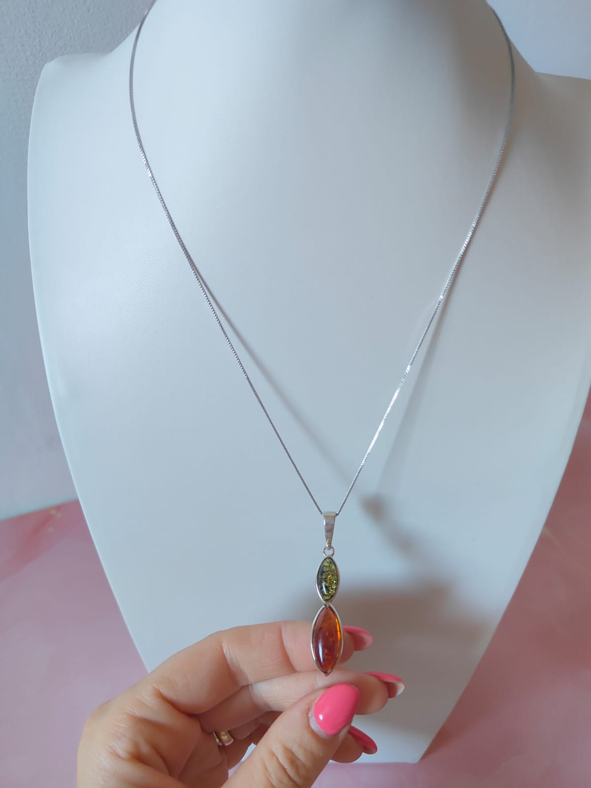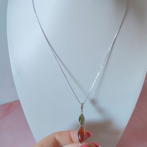 La collana ambra verde e cognac in argento 925 è un gioiello raffinato e luminoso, pensato per chi desidera unire eleganza e originalità. L’abbinamento di due ambre naturali dona armonia ed equilibrio, trasformando un dettaglio in un’espressione di stile senza tempo.