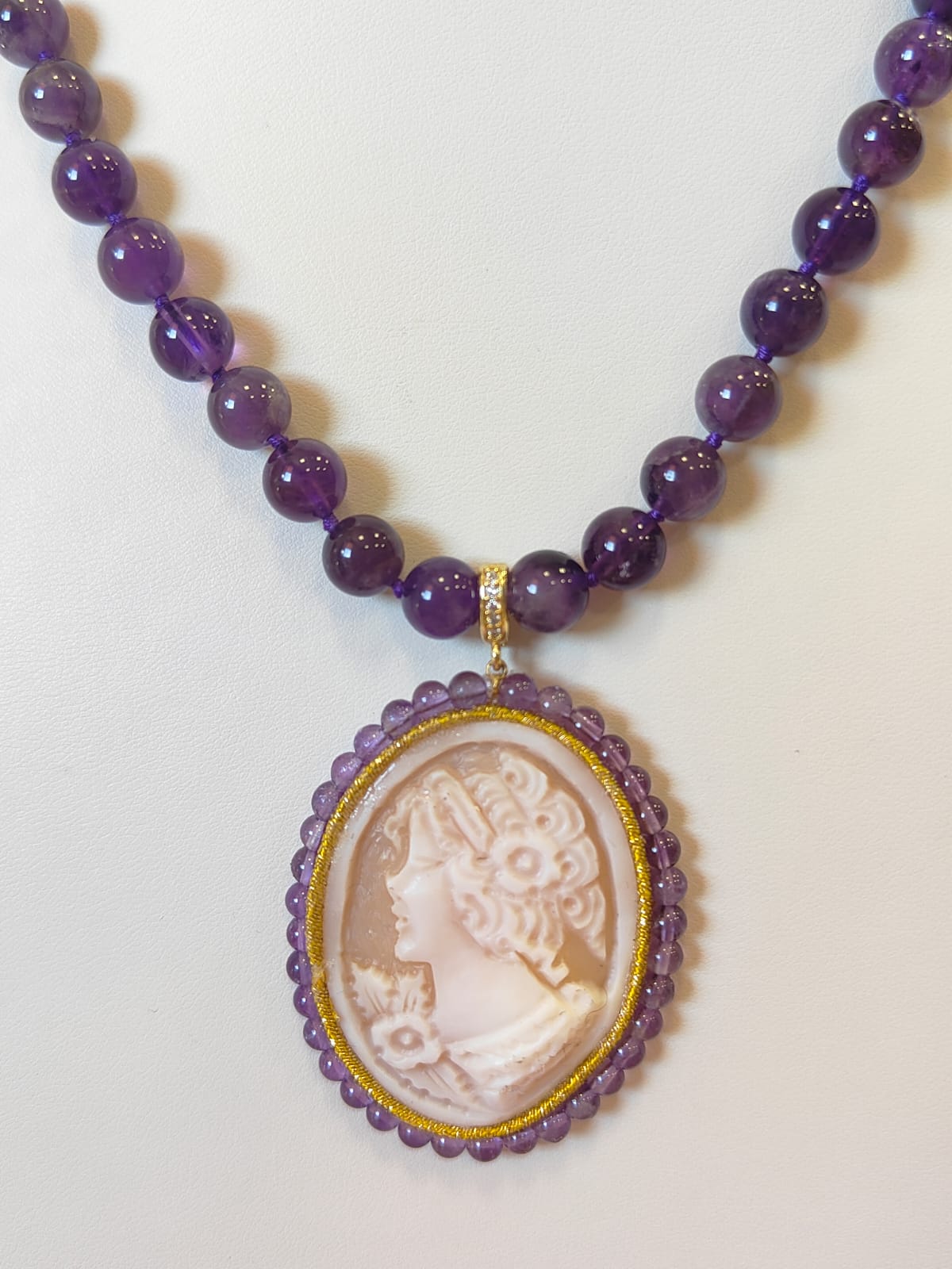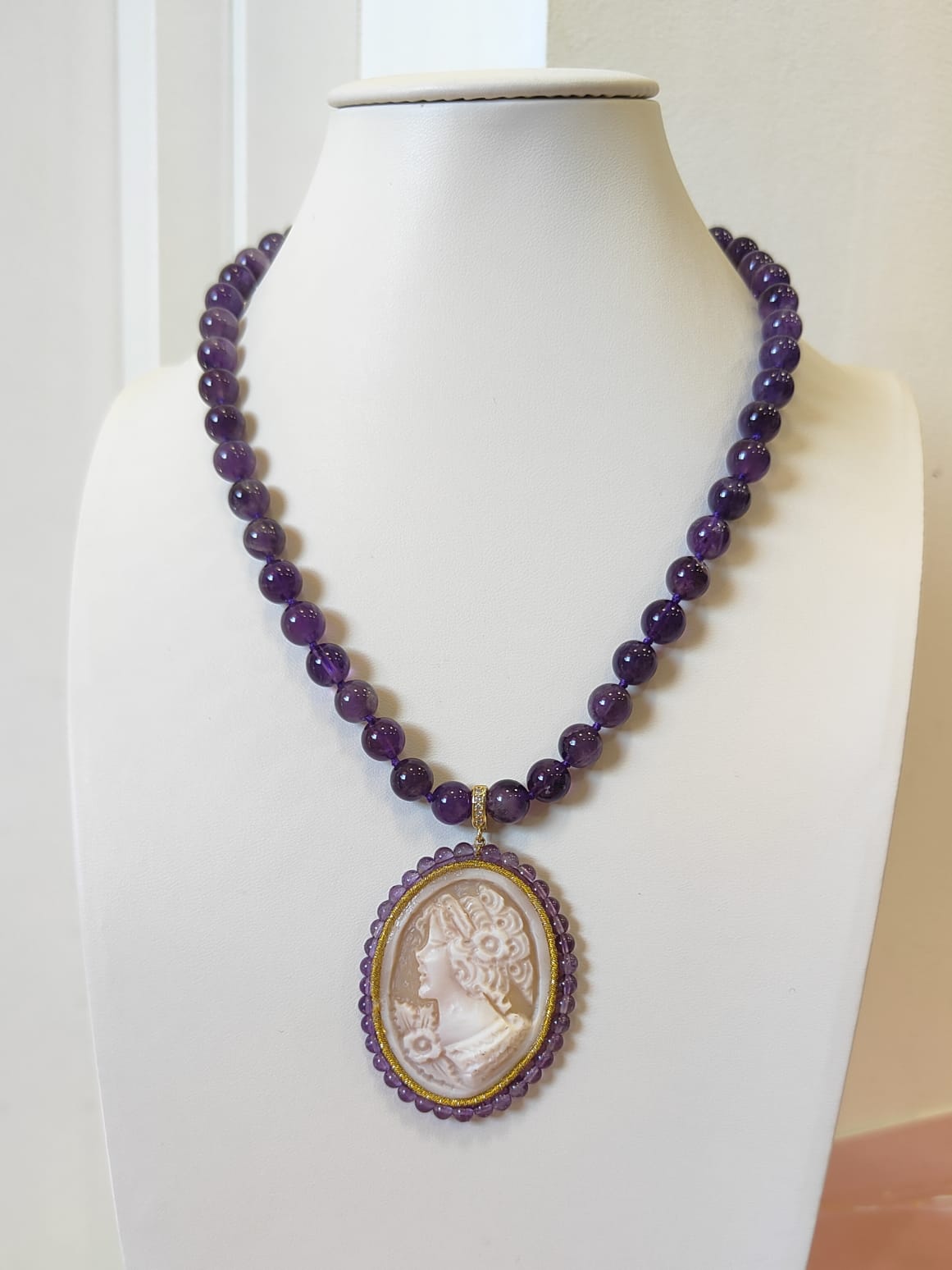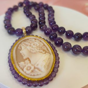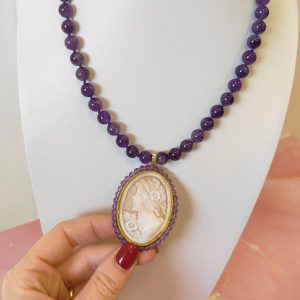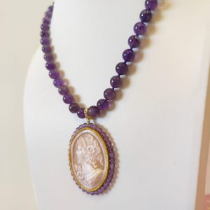 Collana Ametista Con Cammeo Sardonico Inciso A Mano