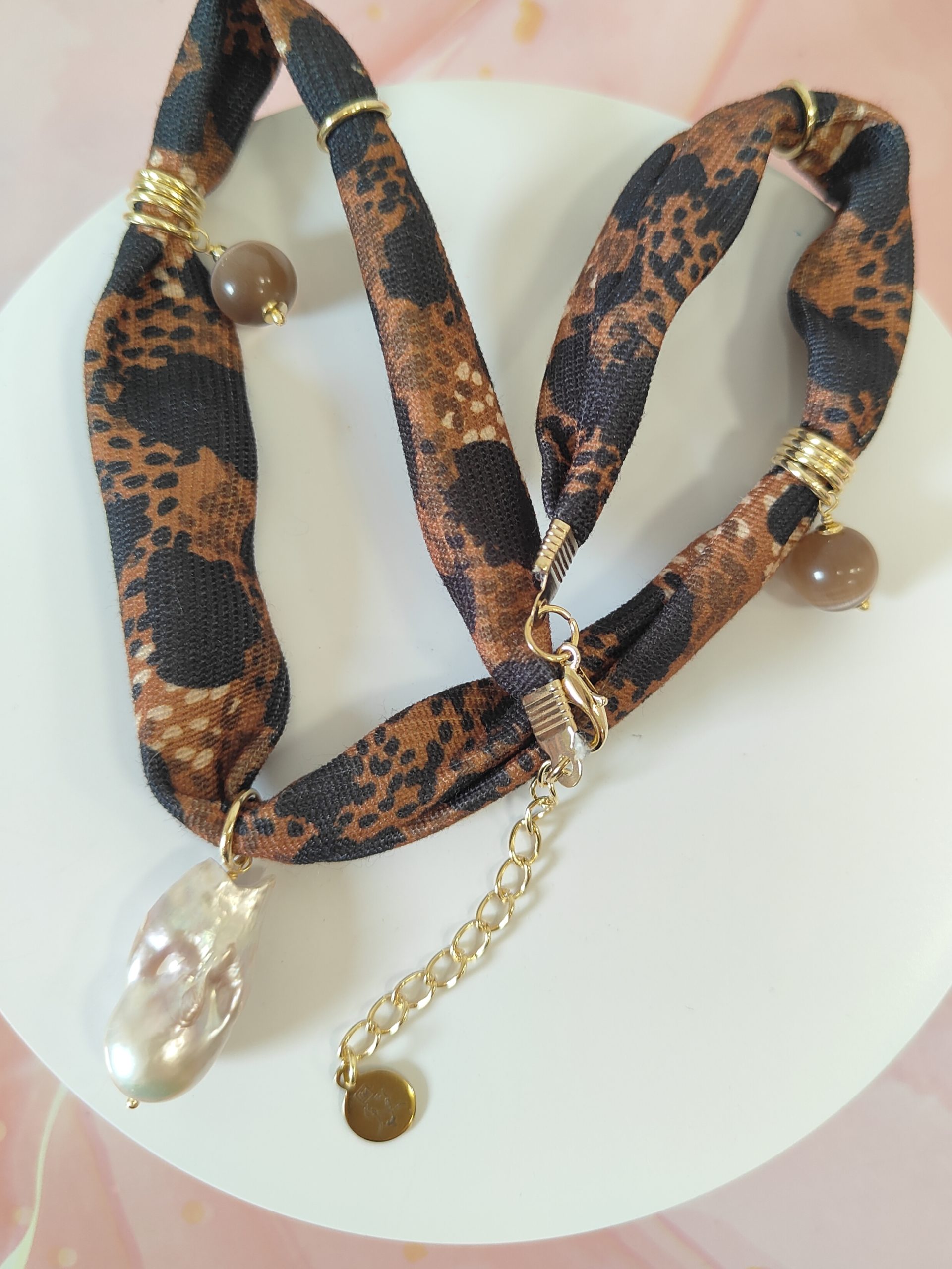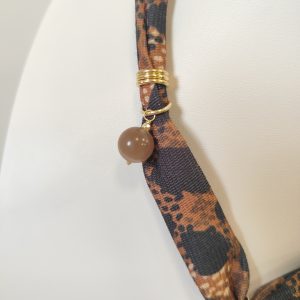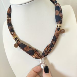 La collana animalier occhio gatto è un gioiello pensato per chi desidera indossare un accessorio che racconti carattere, stile e una raffinata originalità. Il laccio in stoffa, morbido e confortevole, è decorato con una vivace fantasia animalier nelle tonalità del marrone e del nero, un richiamo elegante e moderno alle texture della natura selvaggia. Il tessuto avvolge dolcemente il collo, creando un effetto avvolgente e sofisticato, ideale per aggiungere grinta a qualsiasi outfit.