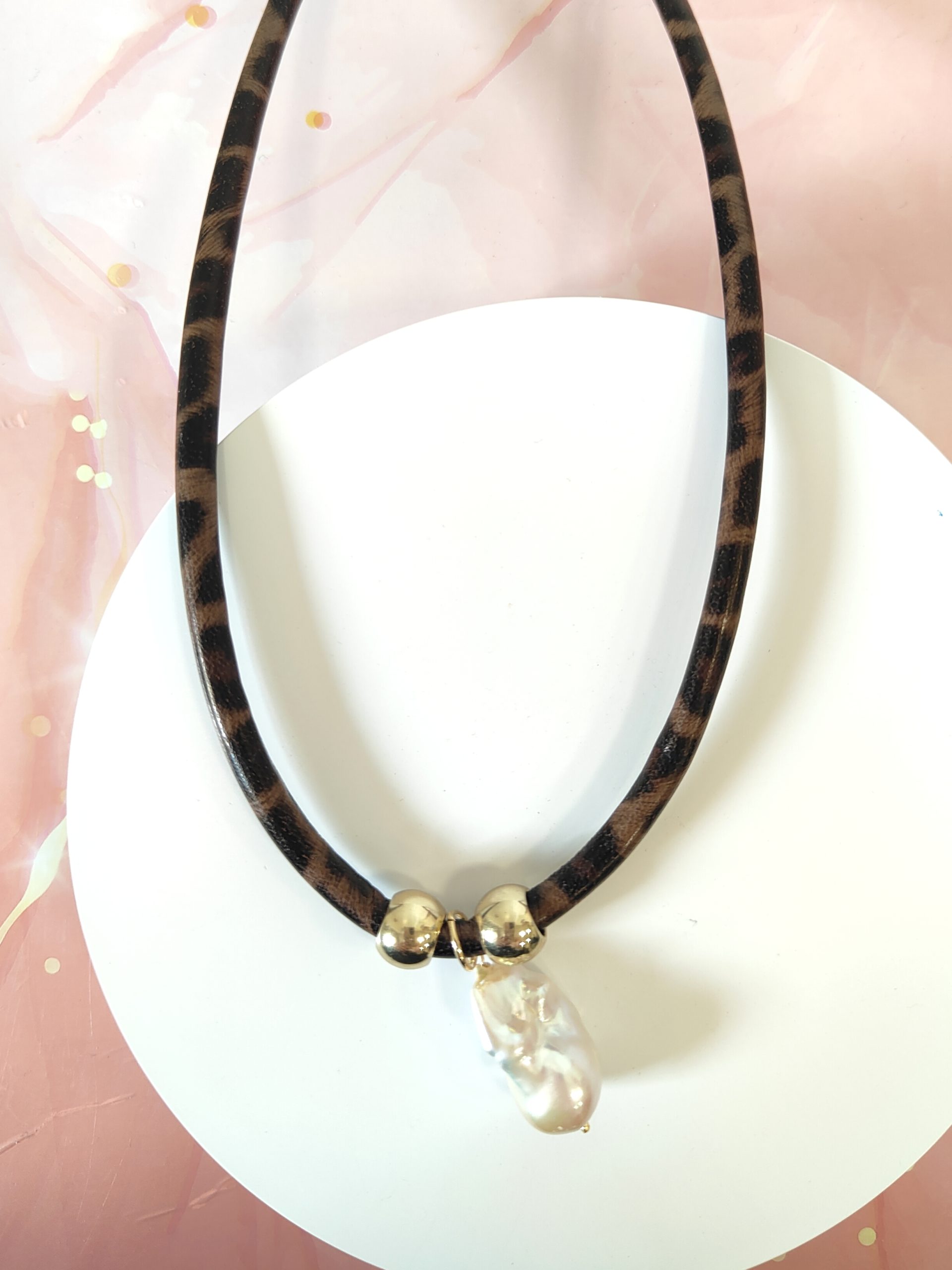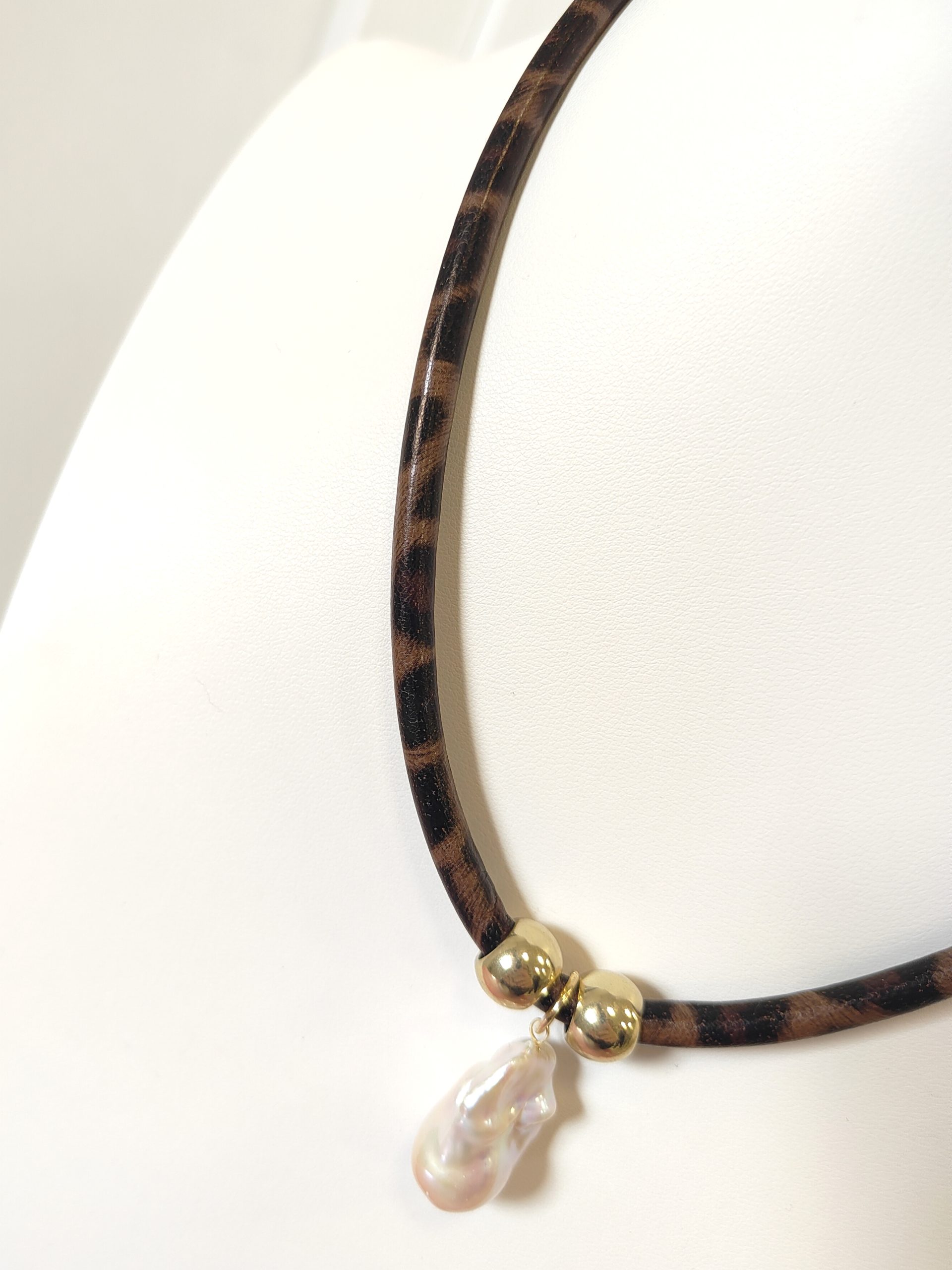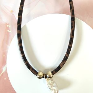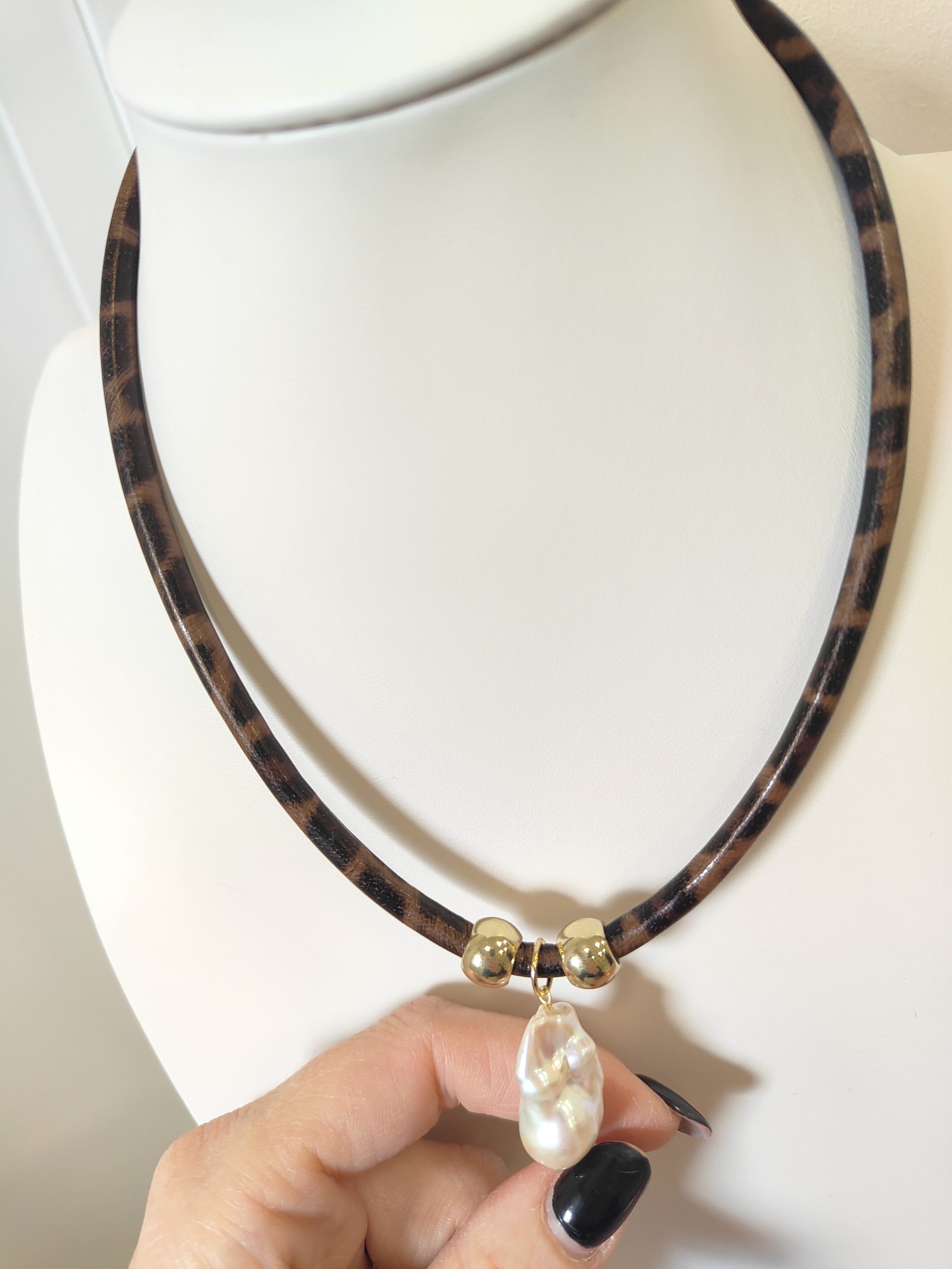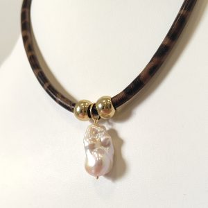 La collana animalier perla è pensata per valorizzare il collo con una linea morbida ma strutturata. Il pattern animalier dona un carattere deciso e moderno, mentre il pendente in perla barocca introduce una componente poetica e luminosa. Indossarla significa scegliere un accessorio che unisce energia e delicatezza, rendendolo perfetto per chi cerca un gioiello capace di raccontare la propria storia con stile.