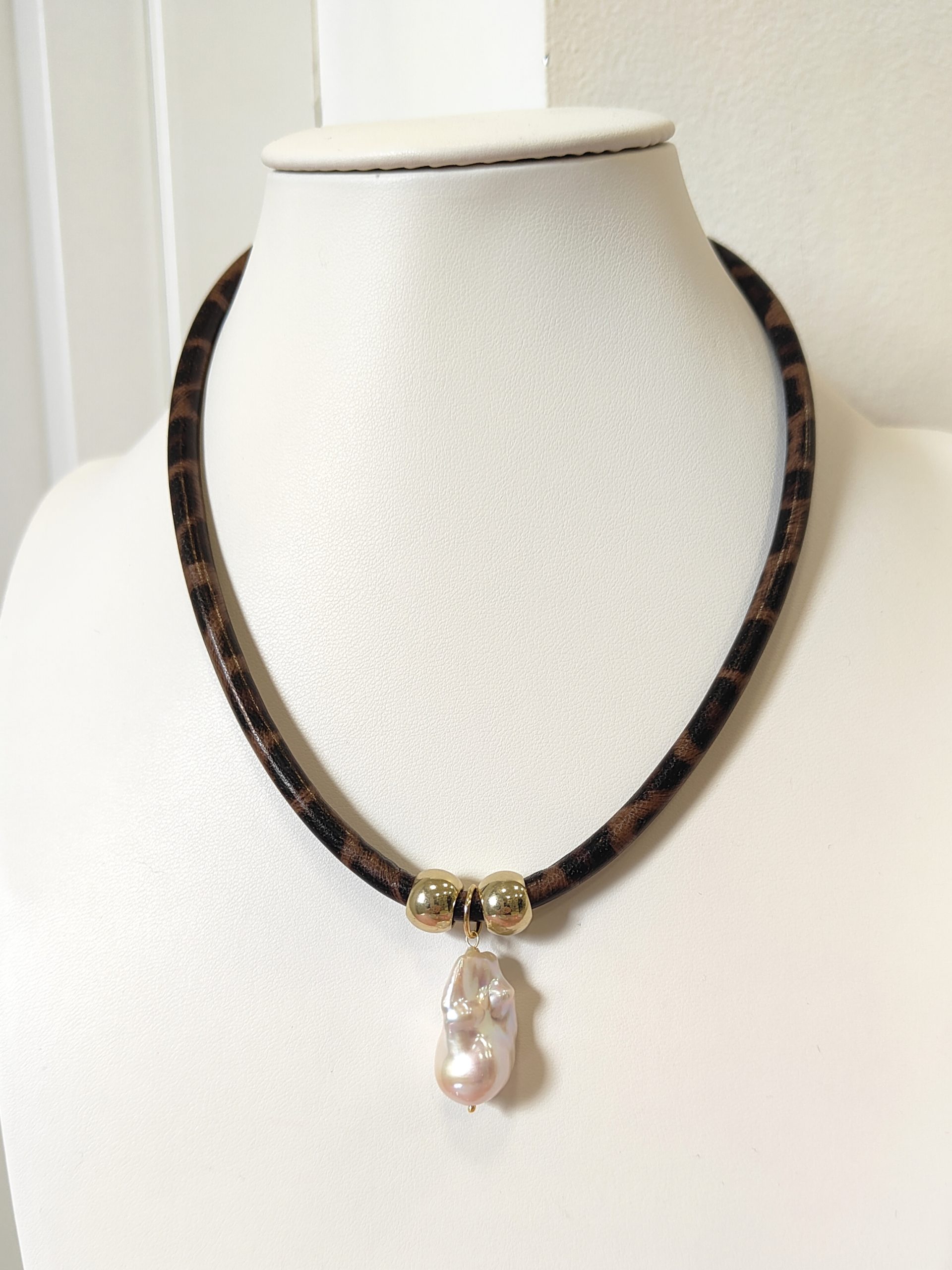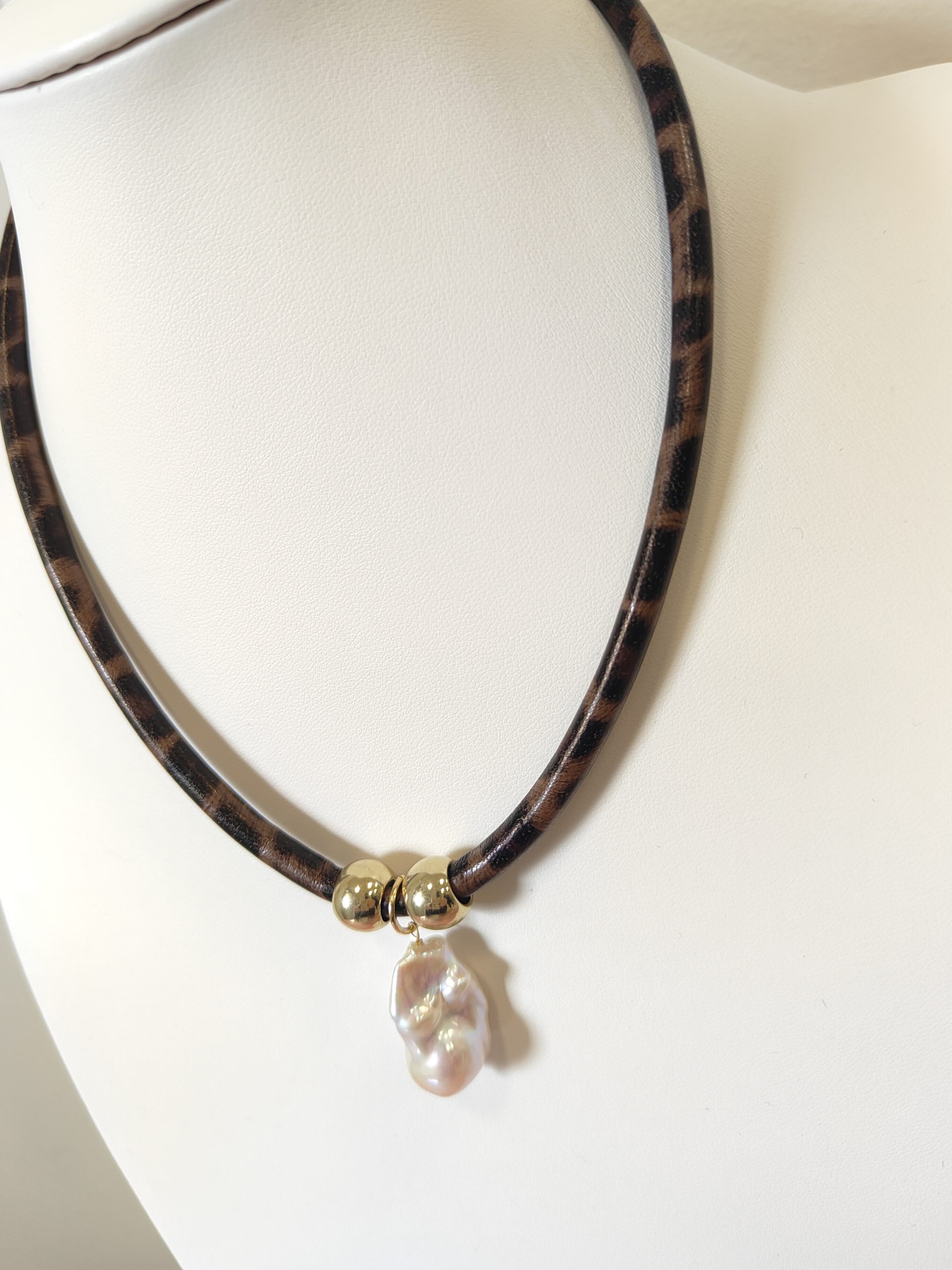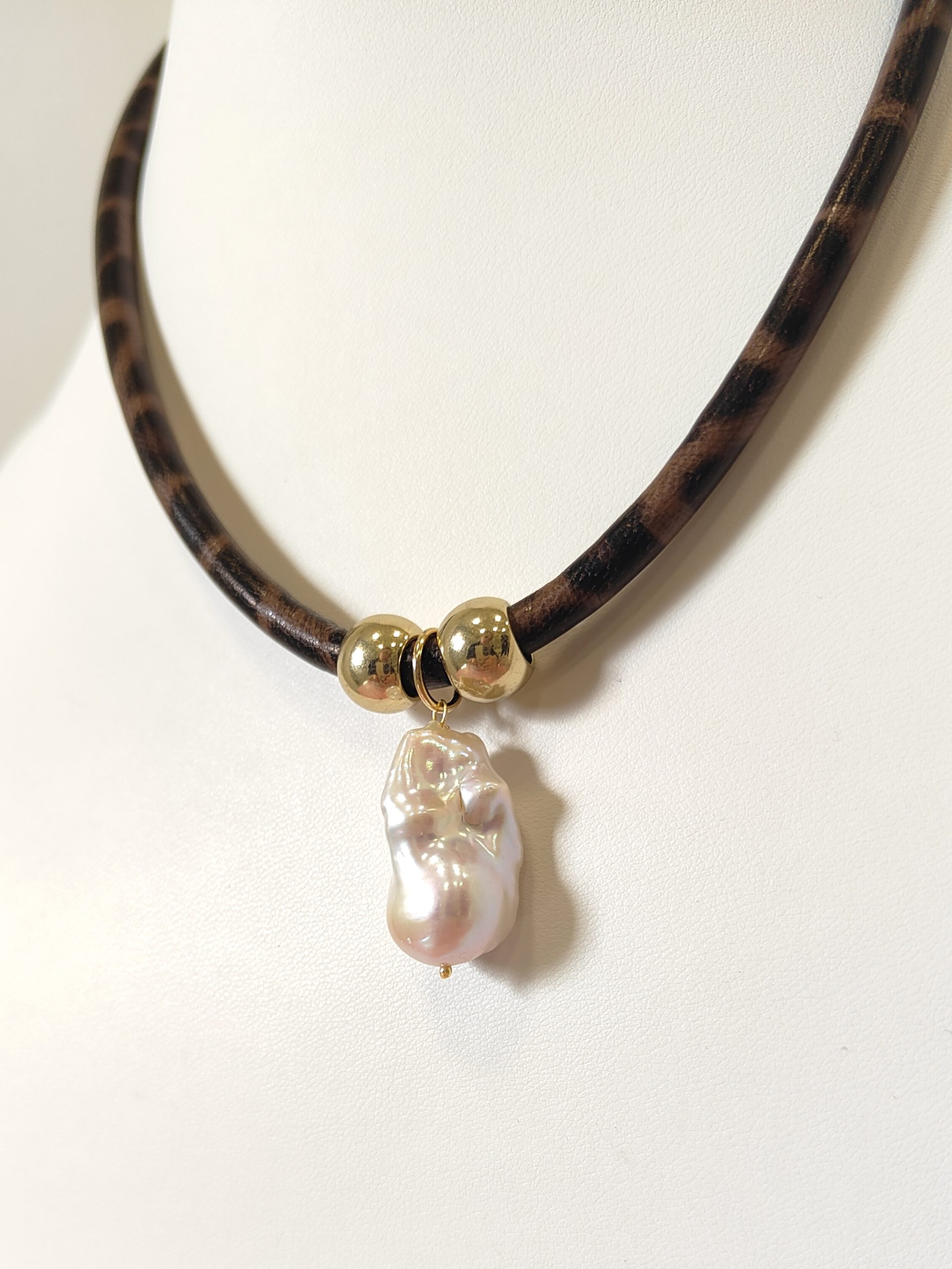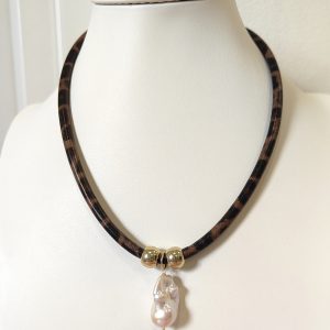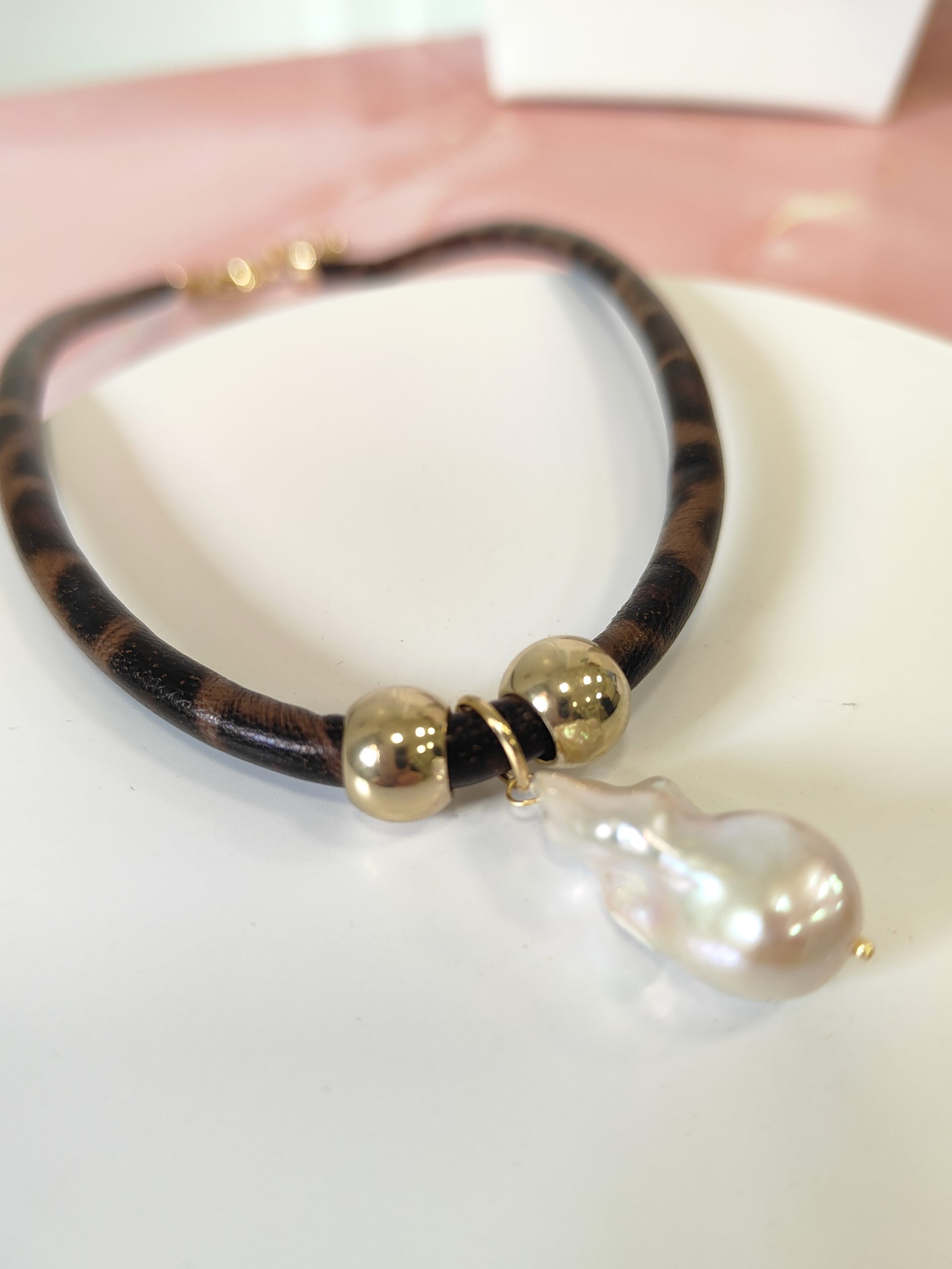 La collana animalier perla è pensata per valorizzare il collo con una linea morbida ma strutturata. Il pattern animalier dona un carattere deciso e moderno, mentre il pendente in perla barocca introduce una componente poetica e luminosa. Indossarla significa scegliere un accessorio che unisce energia e delicatezza, rendendolo perfetto per chi cerca un gioiello capace di raccontare la propria storia con stile.