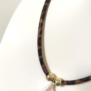 La collana animalier perla è un gioiello pensato per chi desidera distinguersi attraverso dettagli ricercati e un tocco di audacia elegante. Il design nasce dall’incontro tra materiali moderni e forme naturali, creando un accessorio capace di esprimere personalità e fascino senza tempo. Il cordoncino rigido in similpelle, caratterizzato da una vivace fantasia animalier, offre una presenza estetica forte ma raffinata, risultando sorprendentemente versatile sia per look casual chic sia per abbinamenti più sofisticati.