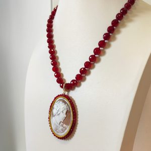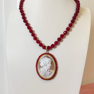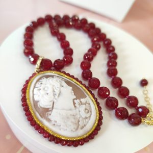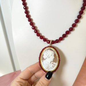 Collana Cammeo Borgogna In Agata E Argento Dorato